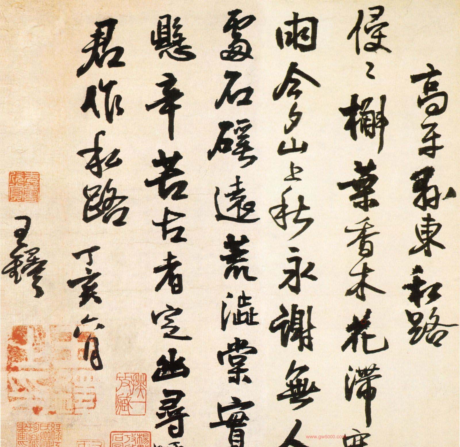 王铎56岁行书欣赏《高平县东私路》,清顺治四年丁亥(1647年)六月,王铎书李贺诗四首之一。