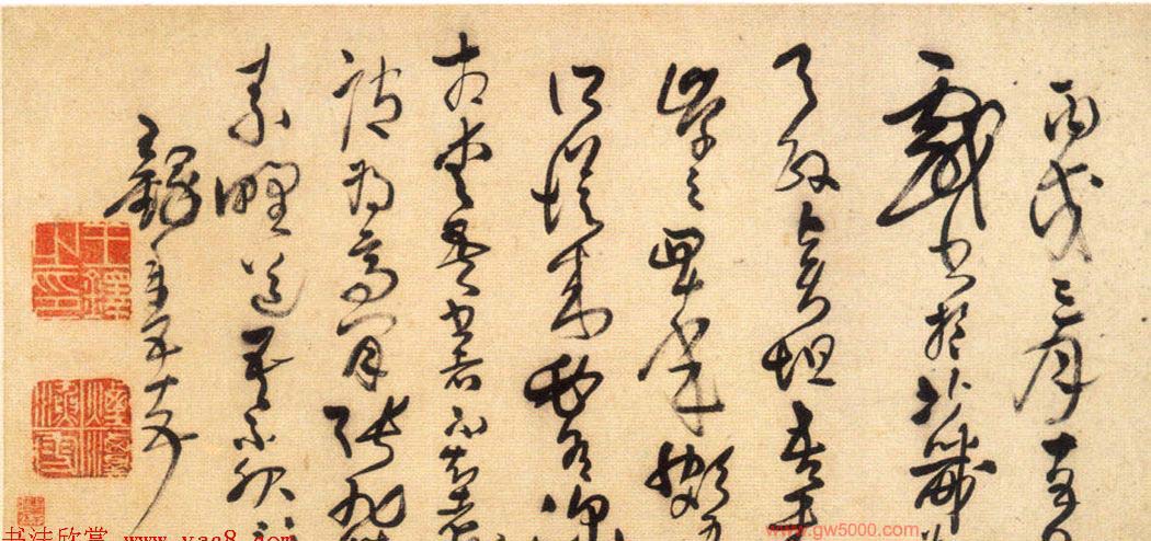 此件《草书唐诗十首长卷》笔力厚拙稳健,点画遒劲婉转,古意甚浓;运笔飞动,粗细起伏带颤动的韵律;墨色浑厚,干湿浓淡富于变化;字与字之间所引带,行与行之间也相互参差。王铎在书写时中掺入了唐人狂草之法,多个人奇崛书风。运锋抑扬顿挫且极富变化,有些字落笔时稍用顿笔“藏头”,往往留下一团墨滞,收尾时又陡然起笔,轻细的点画引带至下一字开首,气脉贯通。墨色浓淡多变,由浓墨下笔,一直写到色淡墨干,由浑厚渐变为枯涩。粗细轻重、枯湿浓淡的起伏跌宕,是笔墨产生很强的韵律感。结体的大小错落和崎侧多姿,行距的疏密相间和揖让开合,也增强了作品的奇逸之势。此幅草书手卷较之立轴更显得流畅、淋漓、狂放、恣肆,气势雄阔磅礴,反映了他典型的草书本色面貌。