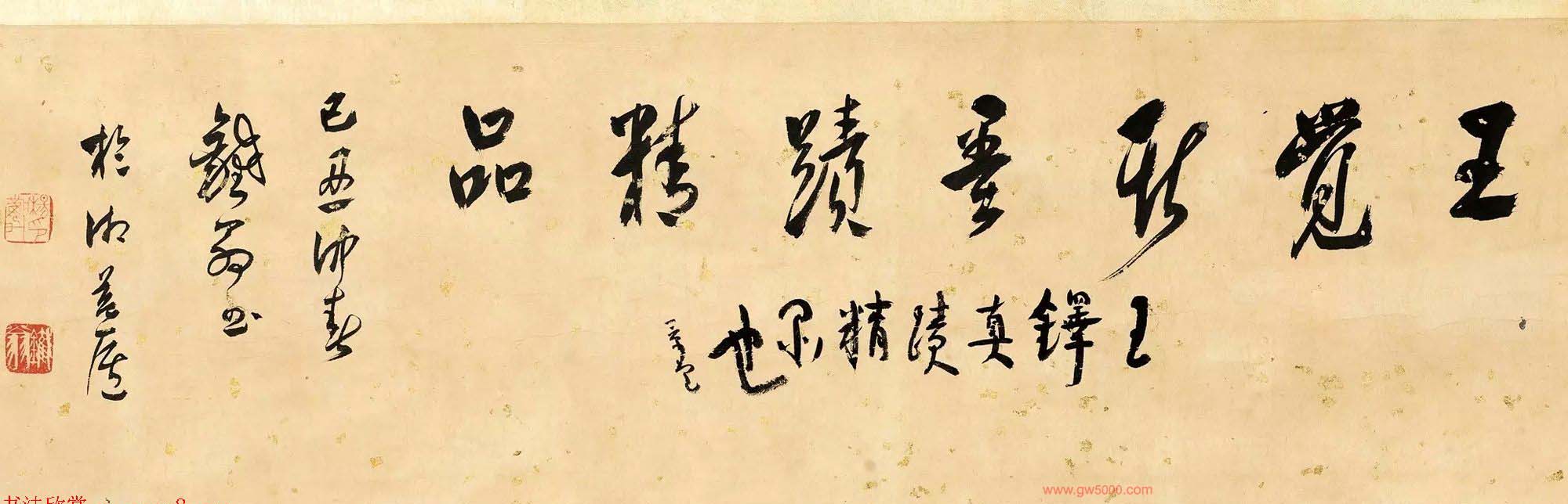 引首:1.王觉斯墨迹精品。己丑仲春铁翁书于湘益庐。 2.王铎真迹精品也。景堂。