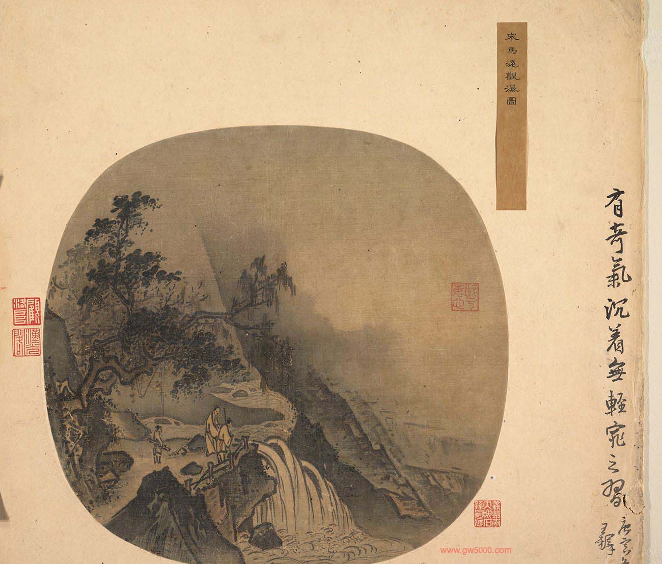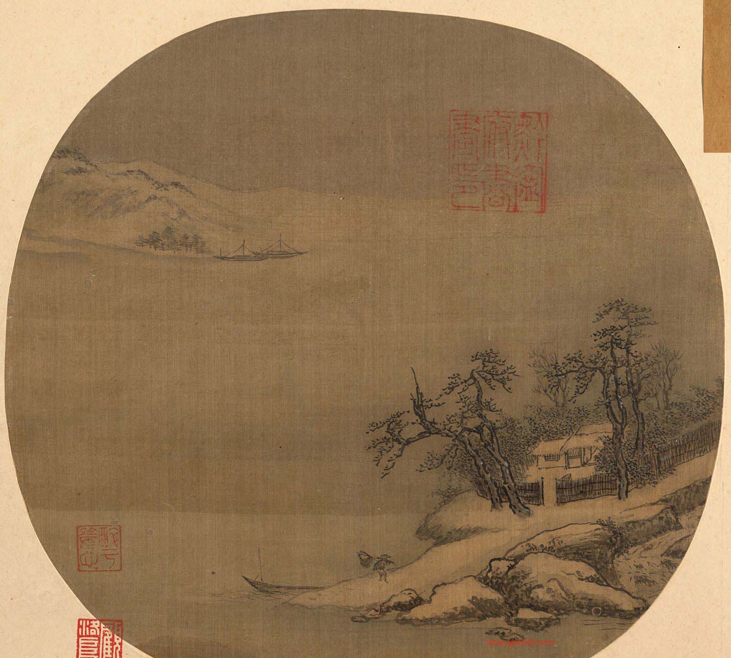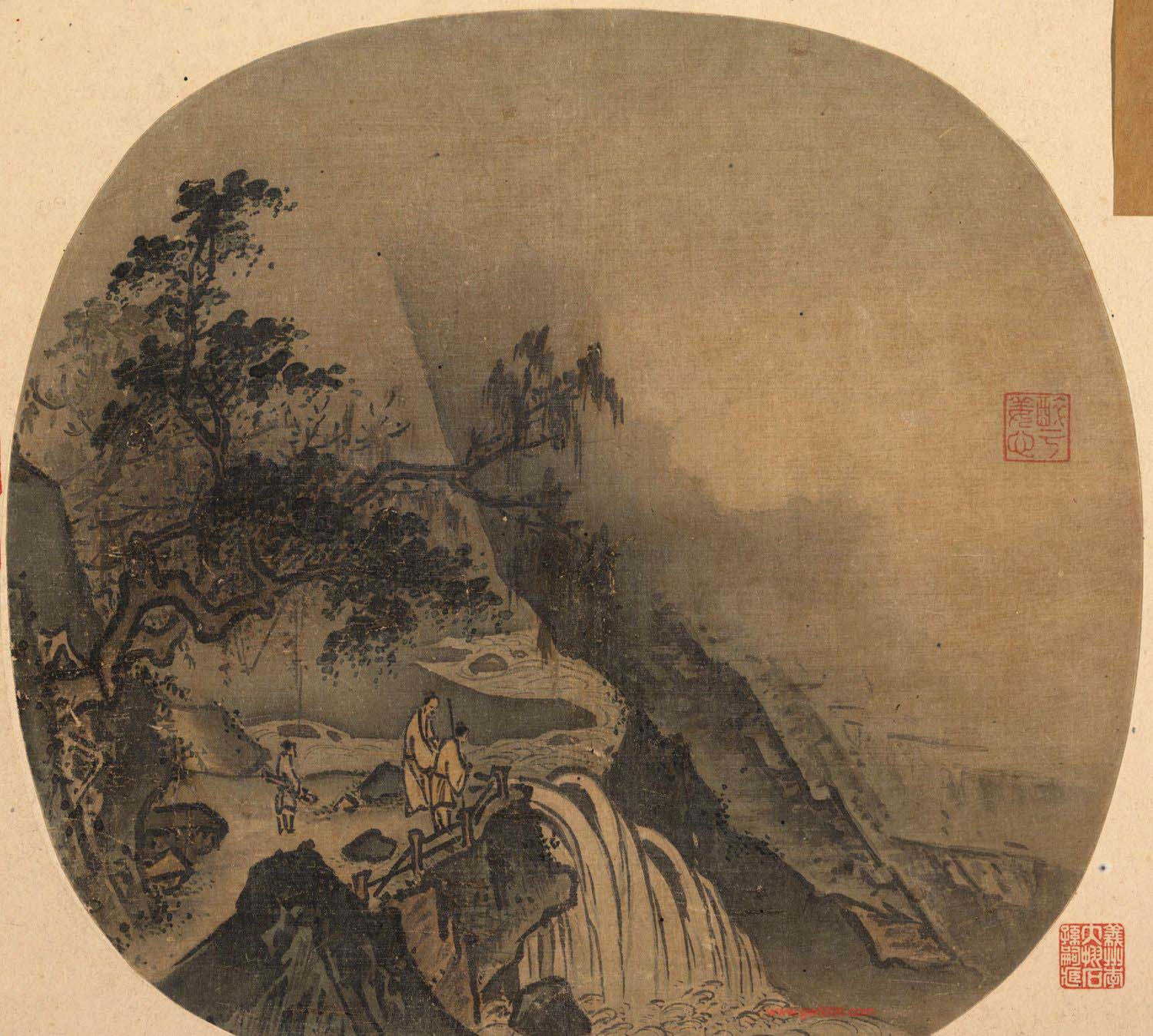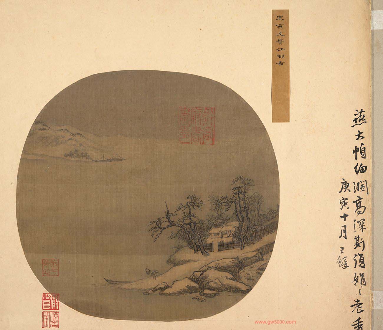 王铎行书书法题宋代团扇画册2帧,纽约大都会博物馆藏。