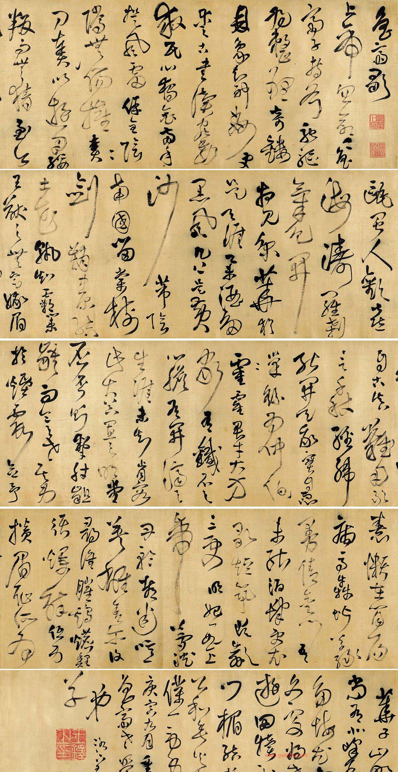 顺治七年(1650),王铎五十九岁时为鲁斋霍达作了一首七言长歌,并用其得意的狂草书成长卷。