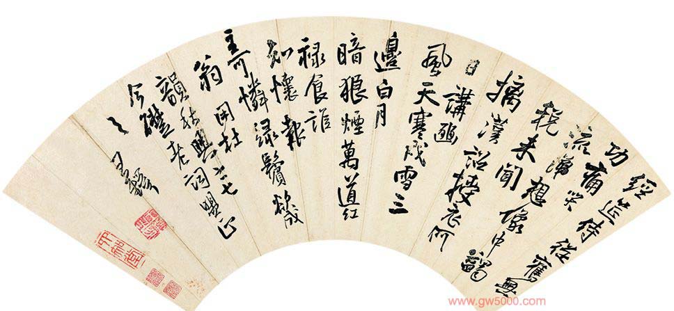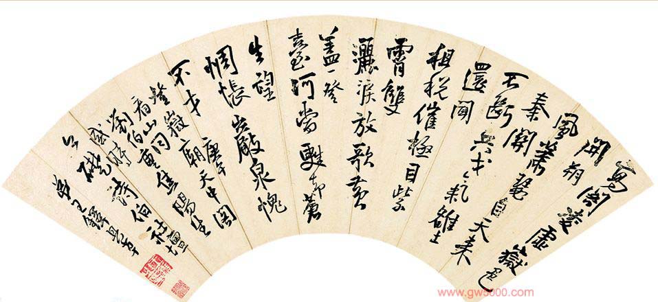 王铎书法扇面八帧,大体在1634年前后陆续写成,均赠送给好友宋之普。