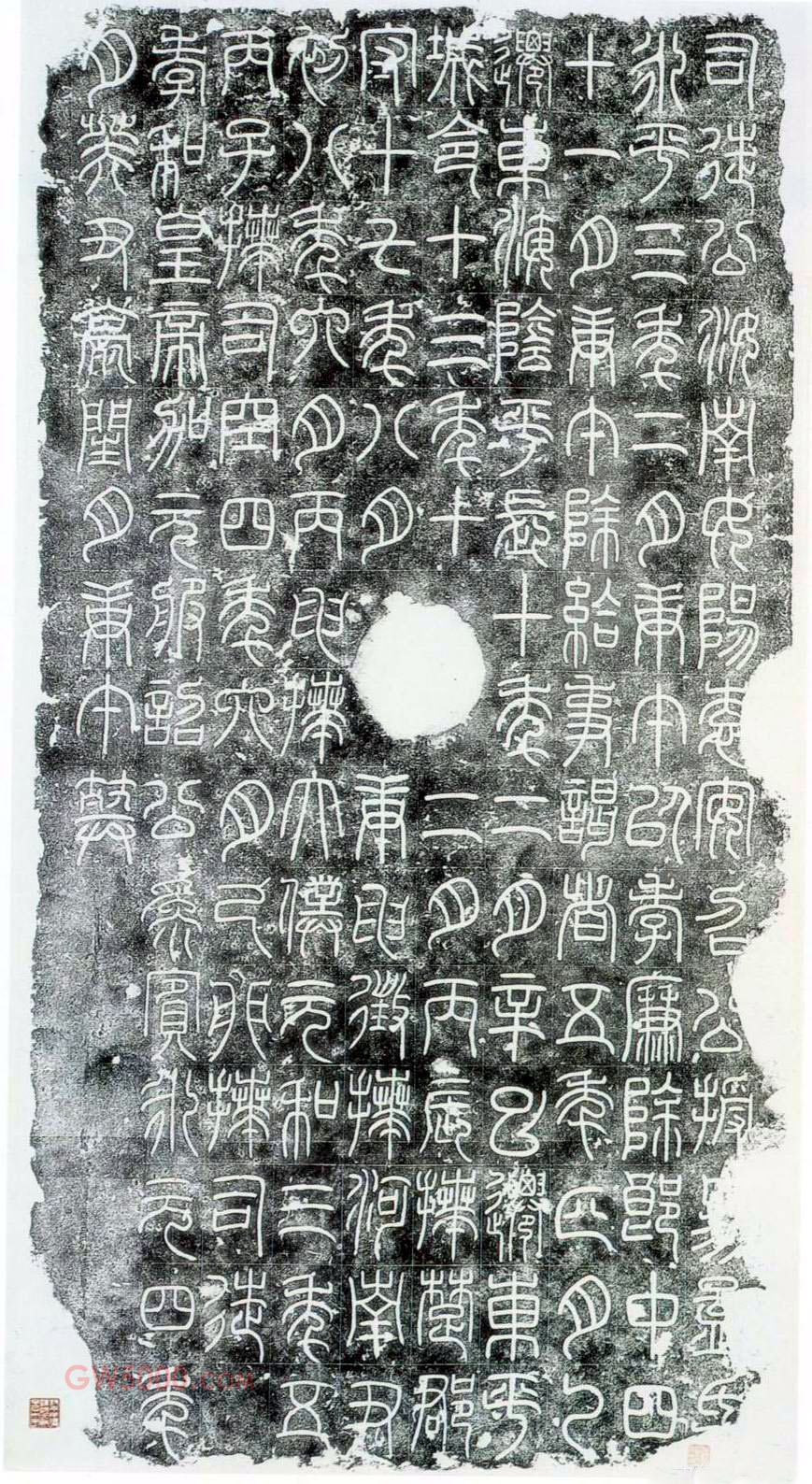 东汉篆书碑刻。全称《汉司徒袁安碑》。东汉永元四年立。在今河南境内,碑石已残,每行末一字及碑额均已损佚,现存碑石高1.53米,宽0.74米,文共十行,满行存十五字,有穿在五六行之间、正当碑中,为汉碑之所仅见。此石于明万历间在偃师县辛村牛王庙中用作供案,因字在下面无人知为碑刻。1929年夏,村中一儿童仰卧其下纳凉,发现石上刻有文字,即告村人,村人任继斌遂以拓本流传行世。近时有翻刻本。书法结体微方,运笔圆匀,所存之字笔画皆极清晰,为学篆者取法善本。有影印本行世。