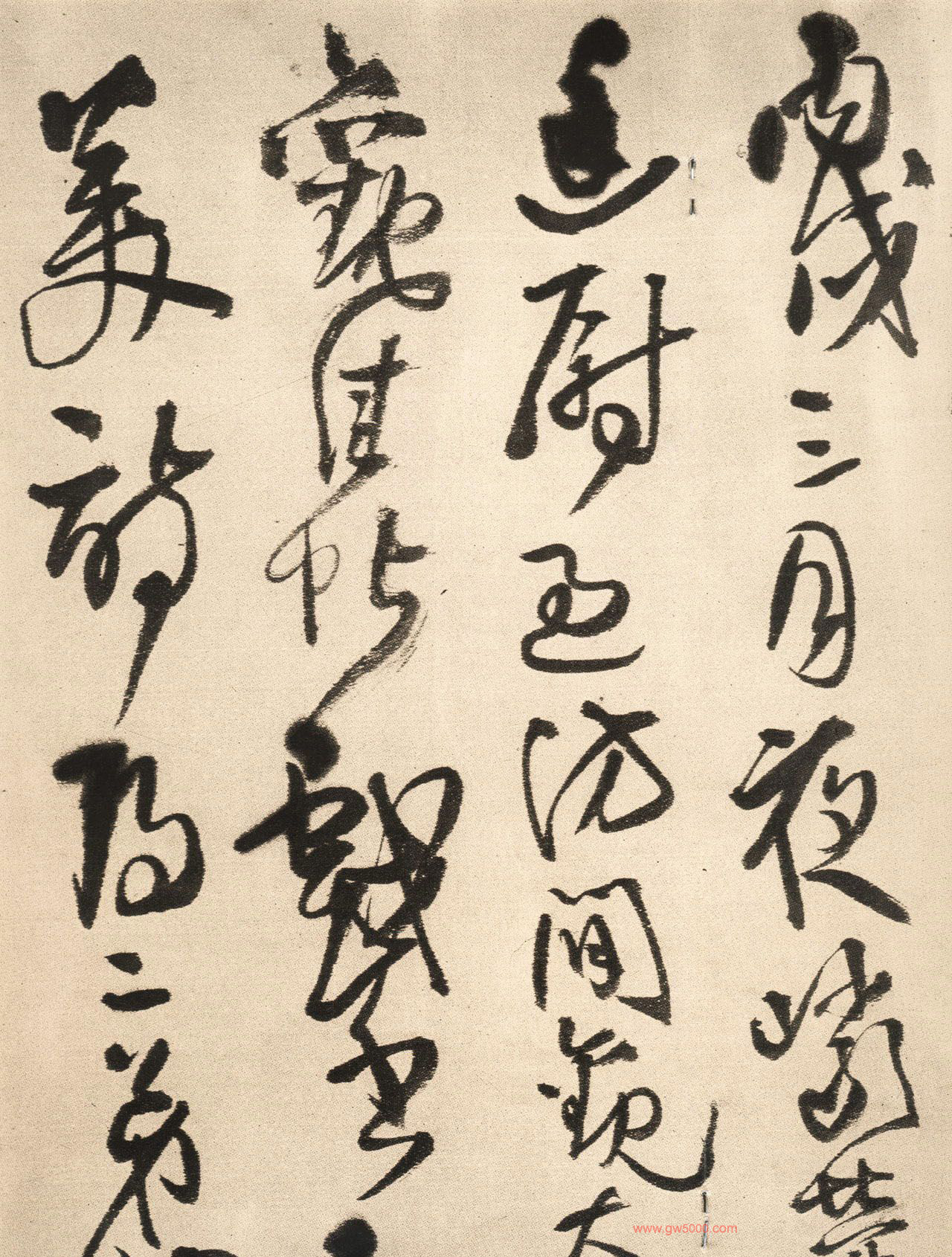 王鐸《草書杜律卷》素綾本,縱25.1cm;橫220.2cm,書于清順治三年(1646),遼宁省博物館藏。