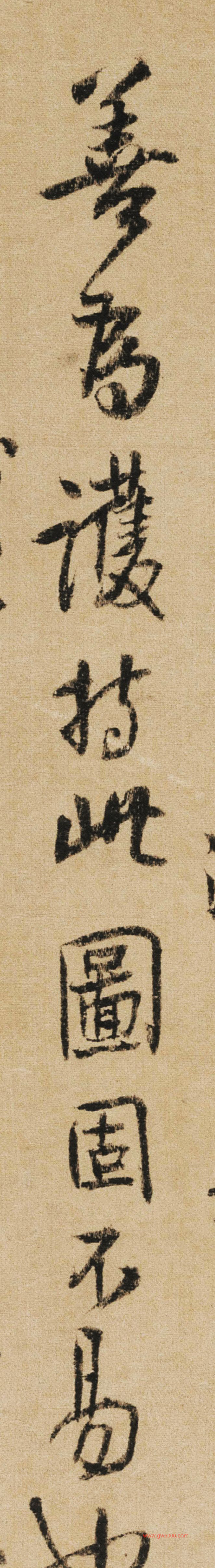 王铎行书题吴镇渔父图轴,绢本,故宫博物院藏。