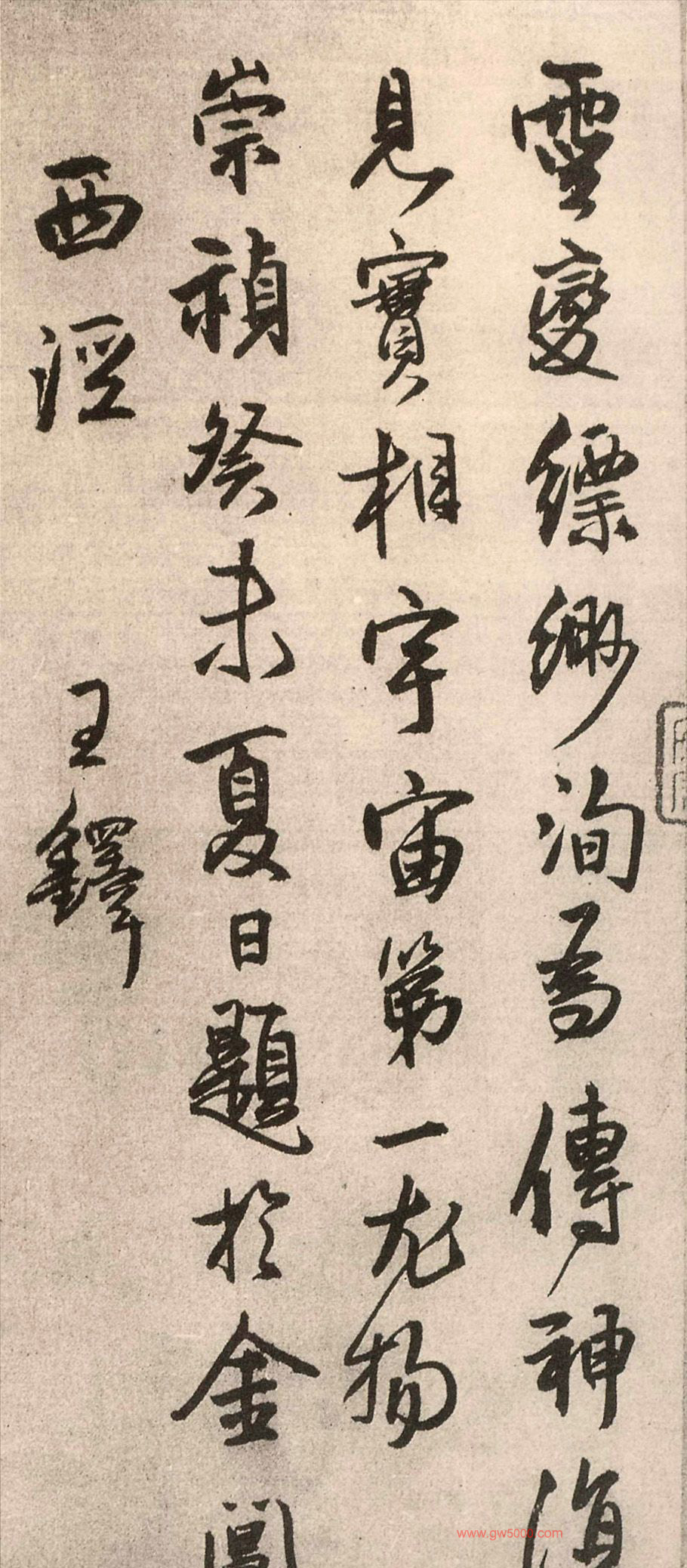 灵变飘渺洵为传神复见实相宇宙第一尤物。崇祯癸未(1643年)夏日题于金阊西泾。王铎