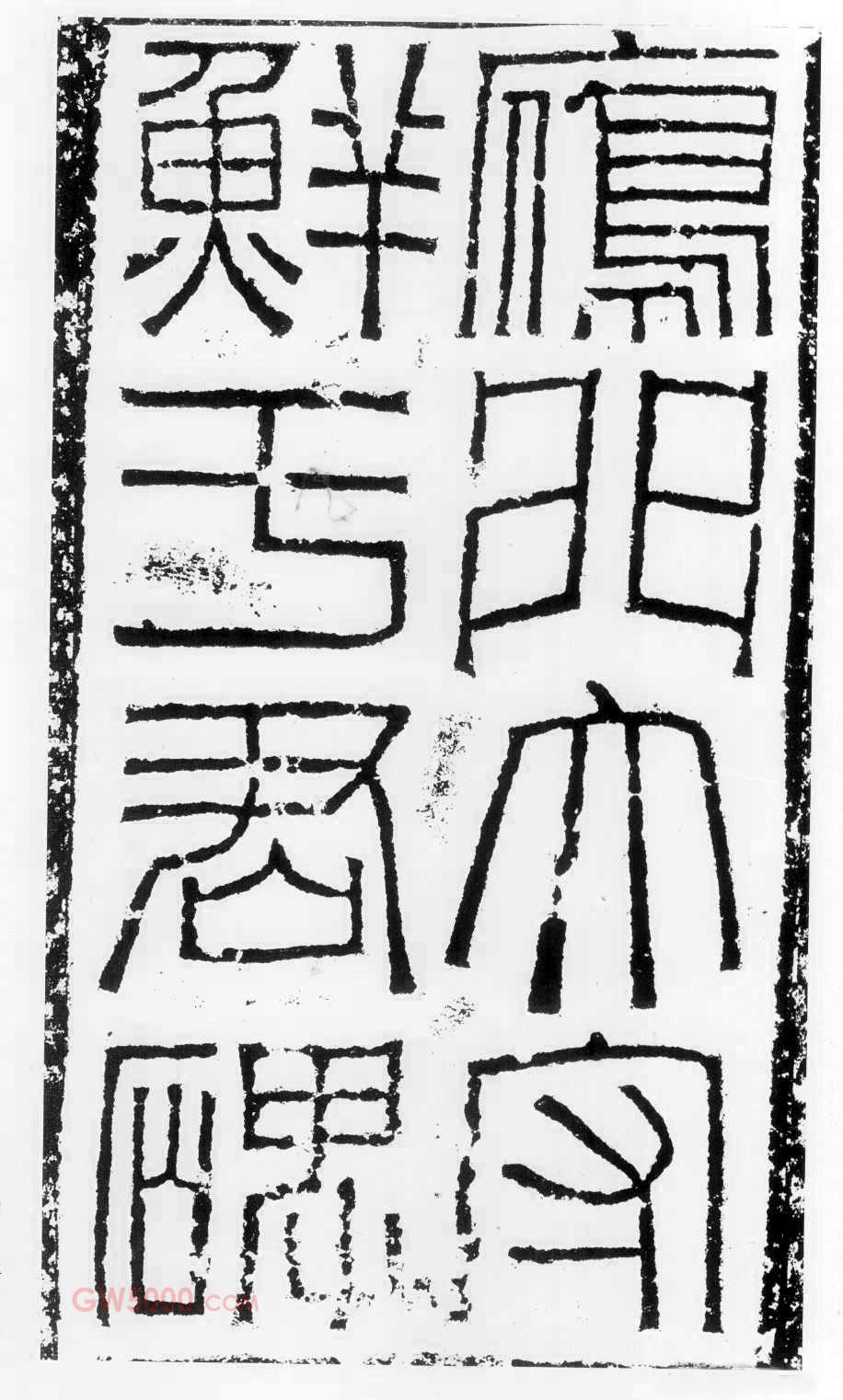 《鲜于璜碑》因是初拓,所以字口清晰,十分宝贵。但因此在书写时也要善于识别,弄清哪些笔划的起头处属于工匠刀刻所为。切莫把宽博方整的外貌和圆浑内在的用笔混为一谈,更不能依样画葫芦,把笔划起头处描成方形。如果仔细揣摩,就会发现此碑处处用中锋,虽转折处多呈直角,但不用中锋圆笔,是表现不出此碑那种含蓄浑厚的感觉的。