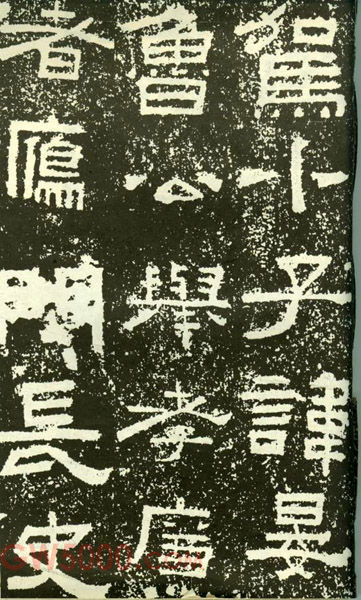 看《鲜于璜碑》很容易使人联想到《张迁碑》,这种通感大概是产生于这两块碑文的字形多呈方硬感的原因。但是,当人们细赏《鲜于璜碑》,就会发现,它还有着自己的强烈个性。《鲜于璜碑》笔画丰厚饱满,波法平整,横画的感觉略比竖粗。碑阳字多呈扁方,而碑阴字扁、长,方相交替出现,形态变化十分生动。加之有时重心高举,下方散开,有时重心低着,呈敦厚状,有时又重心偏倚,或左或右,动势出入微妙之间,妙趣横生。另外《鲜于璜碑》波挑也与众不同,许多横波肥厚而作扭锋上翘状,更增添了一种幽默感。
