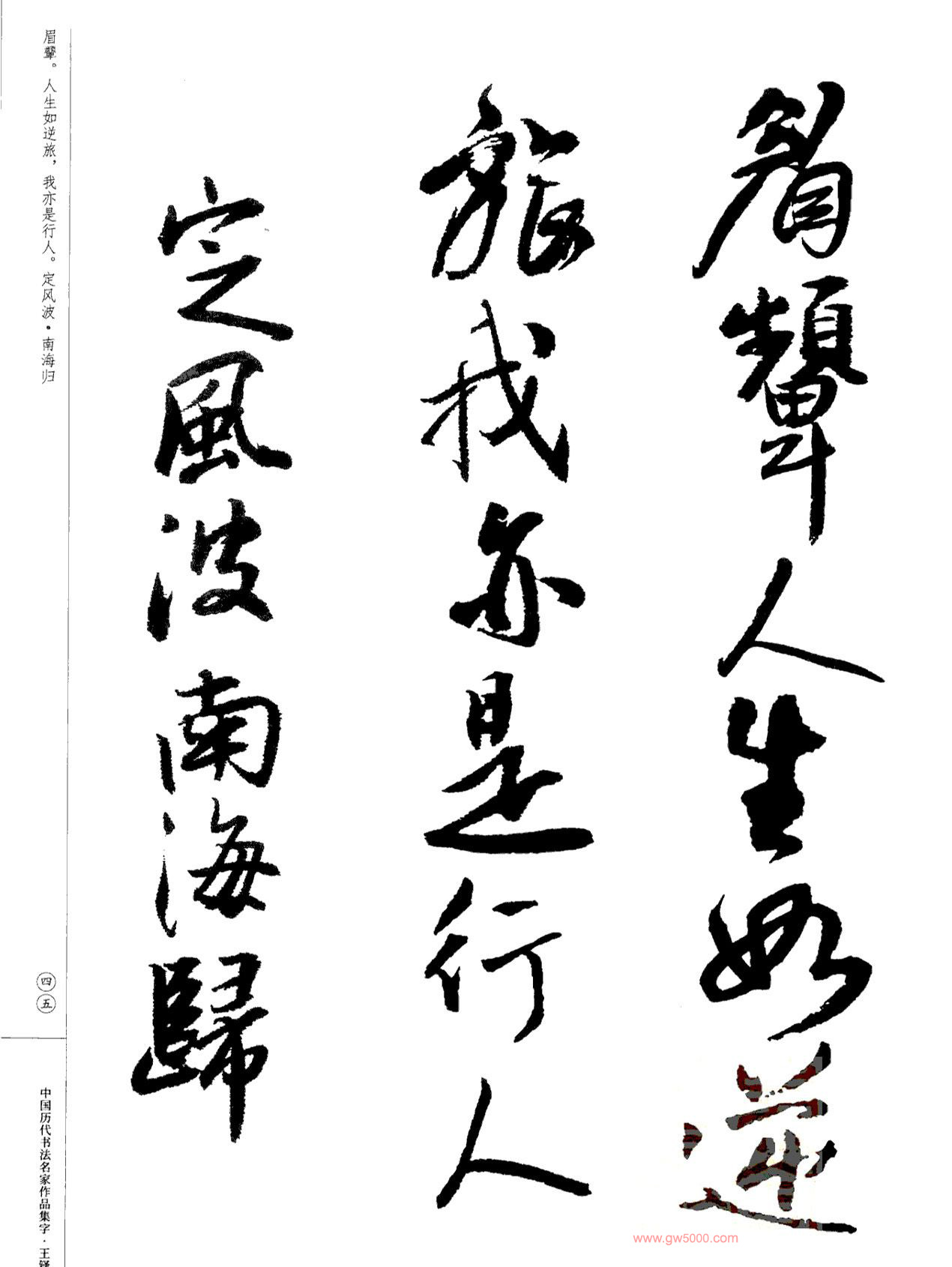 中国历代书法名家作品集字王铎·宋词,主编:江锦世,人民美术出版社。