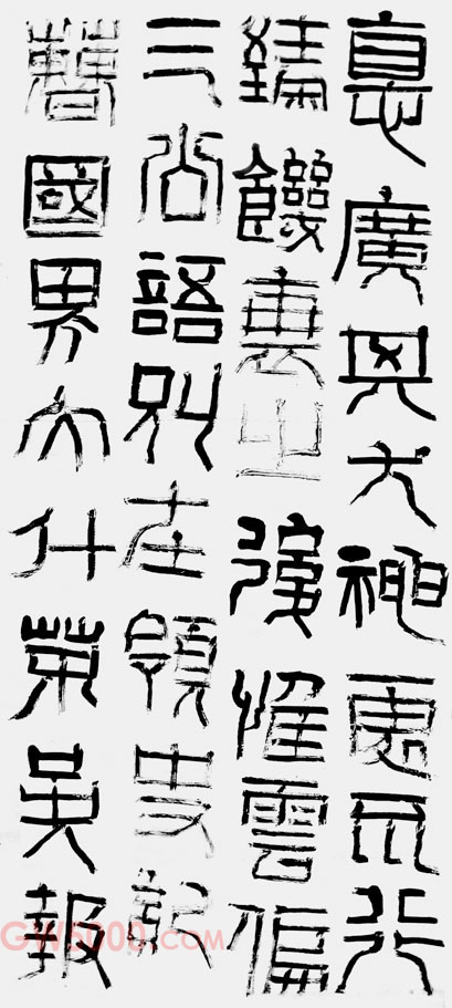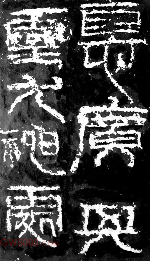 就是以隶书的方法来写篆书。东汉已不是篆、隶书体的转变阶段,所以这种特征与秦隶中夹杂篆体是两回事。只要看一看《祀三公山碑》上时有在横画的末尾装上一个“现代”的波挑捺脚,就可以清楚地看到,不管它如何尽力写成篆书的结构,终究打上了隶书时代的烙印。