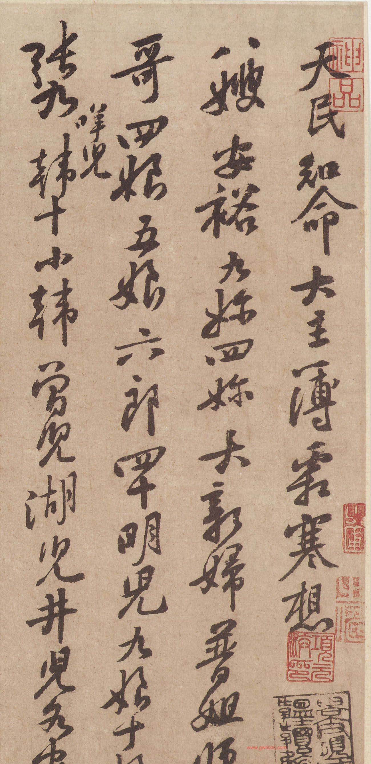 黄庭坚行书作品欣赏《与天民知命书》,此帖亦称《致天民知命大主薄书》,《御刻三希堂石渠宝笈法帖释文》称《家书》,《大观录》称《家书帖》,《墨缘汇观》称《天民知命帖》,《珊瑚网》称《手简一通》。行书。纸本。信札一则。纵25.5厘米,横45.9厘米。黄鲁直书于北宋哲宗绍圣二年(1095)。《御刻三希堂石渠宝笈法帖》第十三册、《谷园摹古法帖》第十三卷、《宋黄文节公法帖》卷二收录。