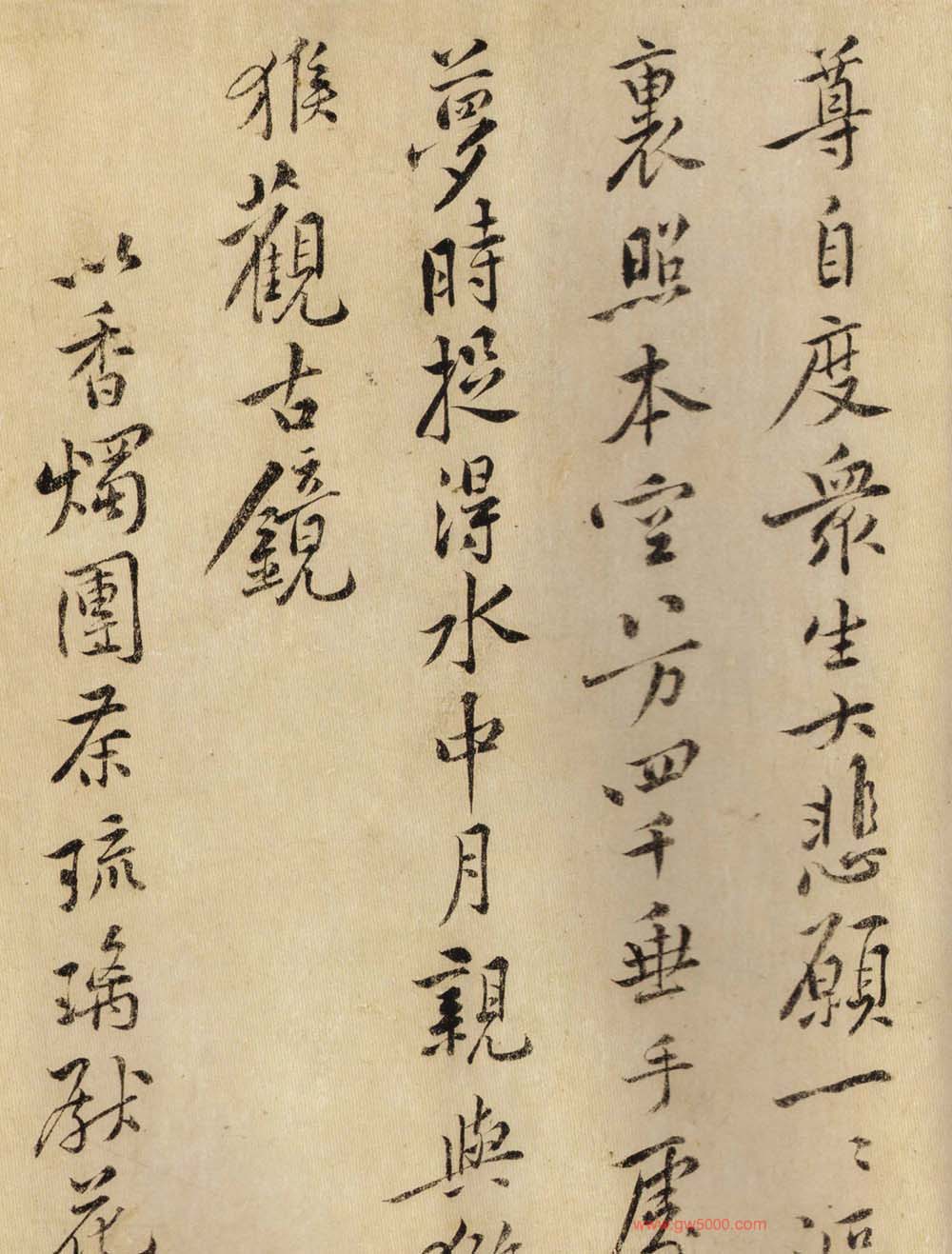 自心海岸孤绝处,戒定慧香补陀伽。观身实相净圣尊,自度众生大悲愿。一一沤里照本空,八万四千垂手处。梦时捉得水中月,亲与猕猴观古镜。