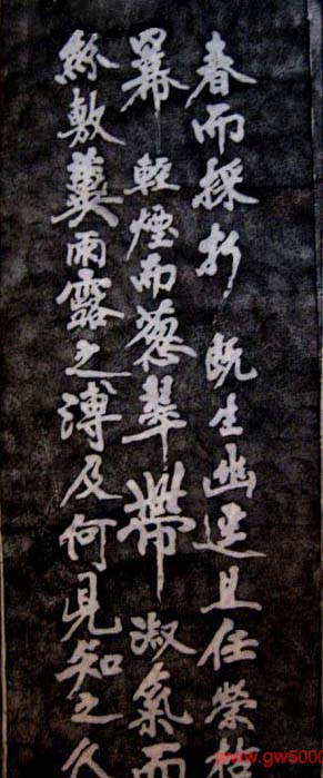 黄庭坚大字行书赏析《幽兰赋》石刻两种,唐代诗人韩伯庸撰文,宋代大书法家黄庭坚书写,河南叶县明代县衙博物馆珍藏。《幽兰赋》为大字行书,大小错落,大字逾尺,小字盈寸。避让得当,错落有致,整体和谐,极富韵致。在黄体原来奇崛挺拔的基础上更显苍劲有力,飘洒俊逸。实有“大珠小珠落玉盘”的意境。