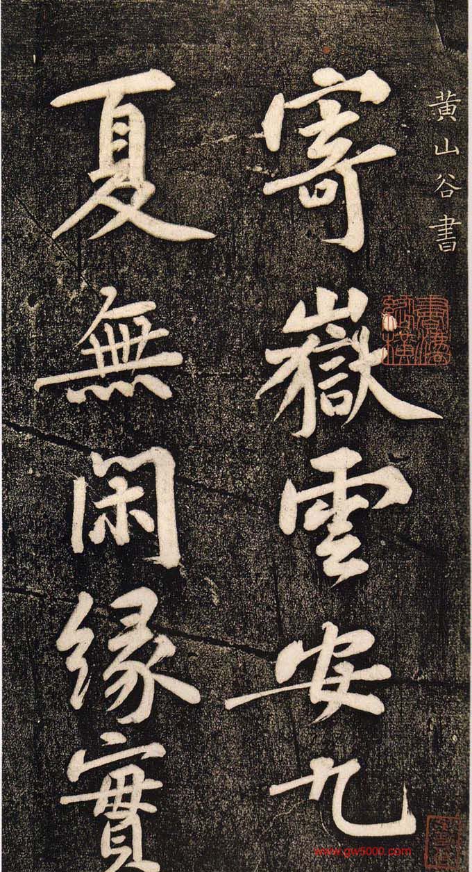 快雪堂法书刻本黄山谷书:黄庭坚行书欣赏寄岳云三言诗帖,国家图书馆藏。