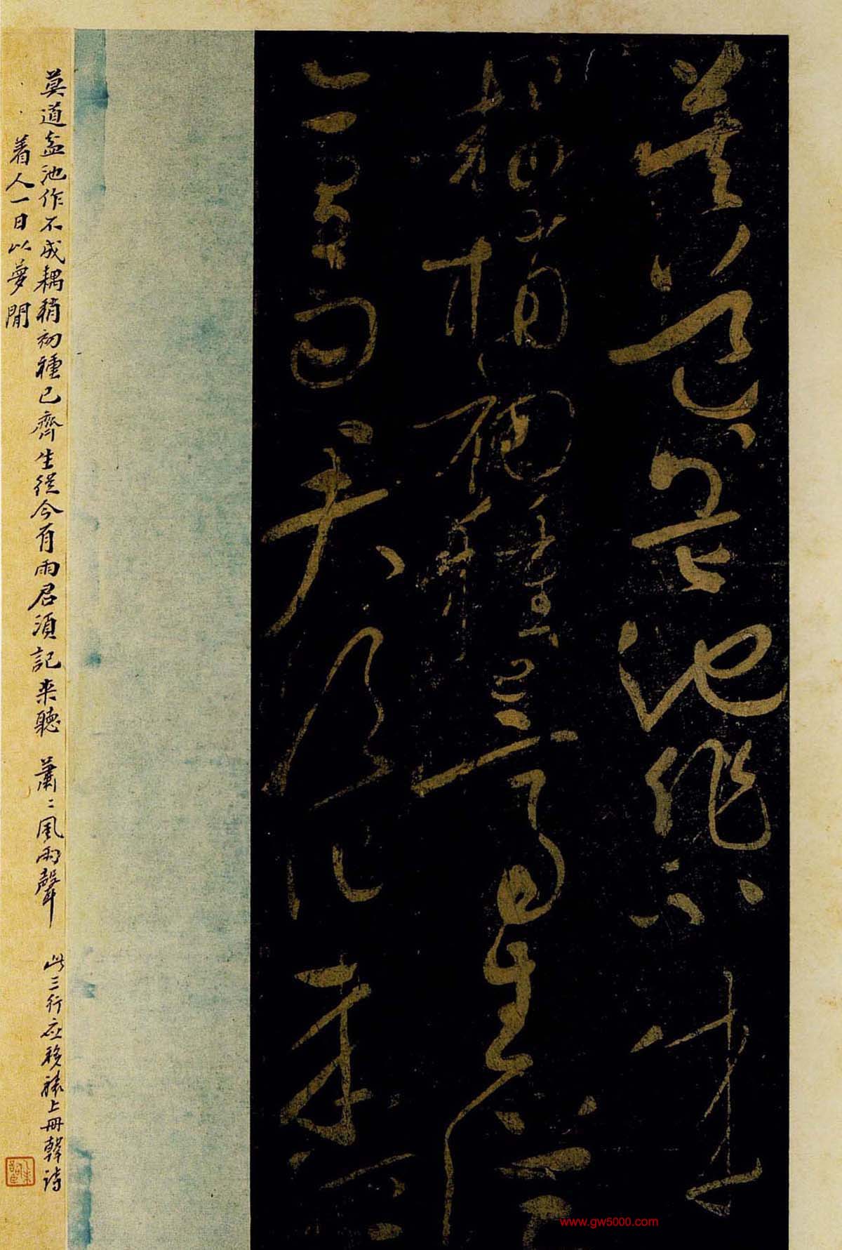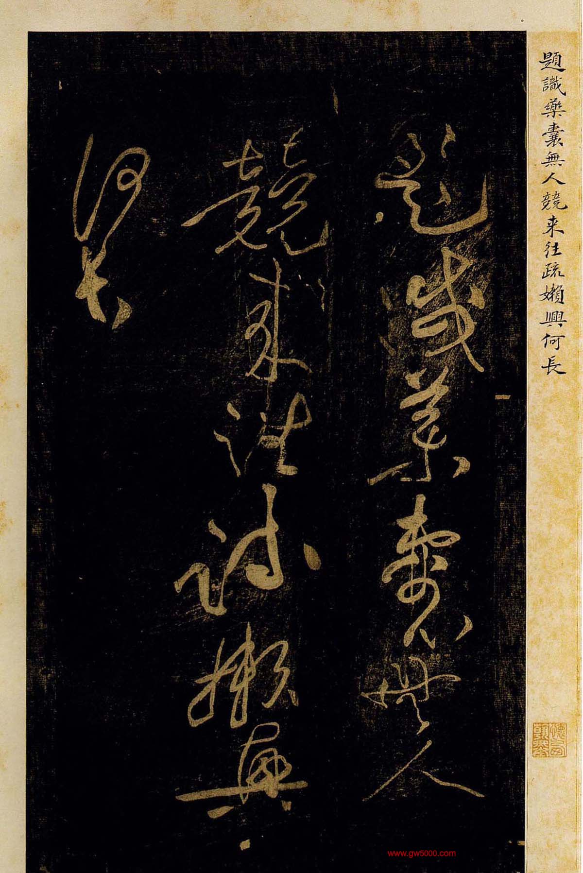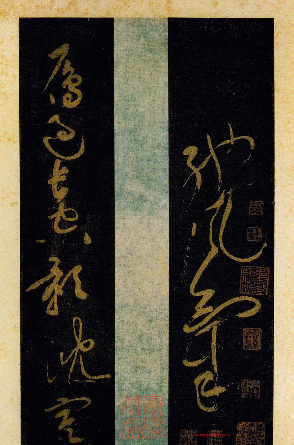 黄庭坚书杜甫诗三首《西郊帖》、《别李义帖》、《秦州杂诗帖》;书韩愈诗一首《盆池帖》;残字有四件《无此暇尔帖》、《富贵浮云帖》、《华严帖》、《羁但将健笔以为适帖》。来源《郁孤台法帖》。