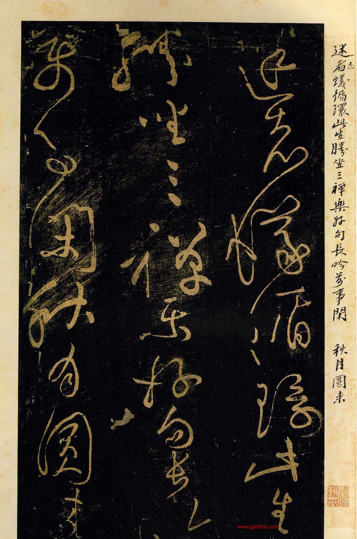 黄庭坚晚年草书欣赏《赠道者帖》。凡七行,共四十六字。〔一语真空出世问,可怜〕迷者蚁循环。此生胜坐三禅乐,好句长吟万事闲。秋月圆来看昼夜,野云散去落何山。到头自了方为了,□□经函叩祖关。此帖实为僧润《诗三首》之二,宋刻本《景德传灯录》卷二十九收录。缺十一字。末句刻本作“休执他经扣祖关”。僧润待考。综观上述书迹,无论行书标题或草书正文,其书风与黄庭坚元符三年 (1100)所书的 《张大同卷》、《诸上座帖》极其相似,应属黄庭坚晚年所书。