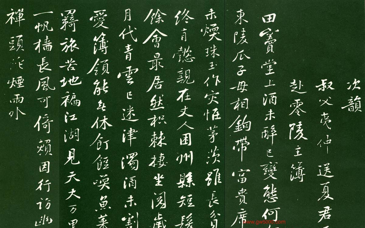 宋代黄庭坚行书欣赏《次韵叔父帖》全称《次韵叔父夷仲送夏君玉赴零陵主簿》,约书于元丰三年(1080年)。刻入《御刻三希堂石渠宝笈法帖》。黄山谷书法图片4张。