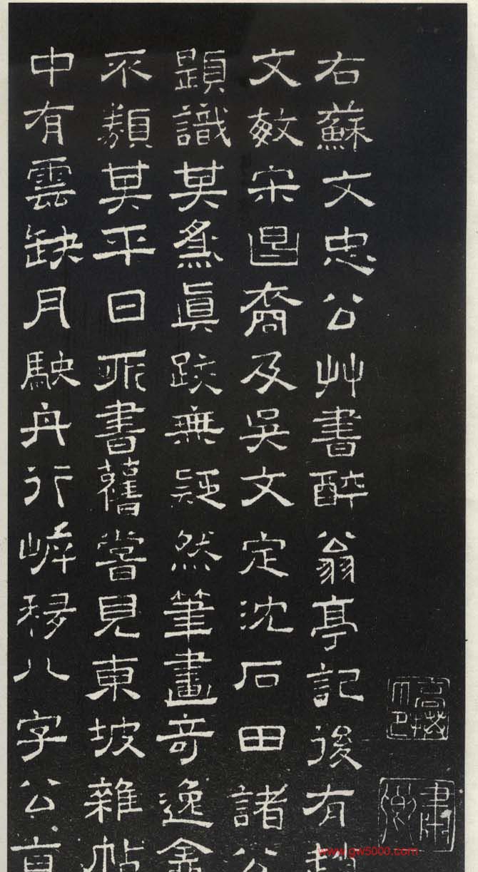 苏轼草书《醉翁亭记》欧阳修撰文,苏轼丹书,文彭勒石,史称“三绝碑”为稀世珍品。