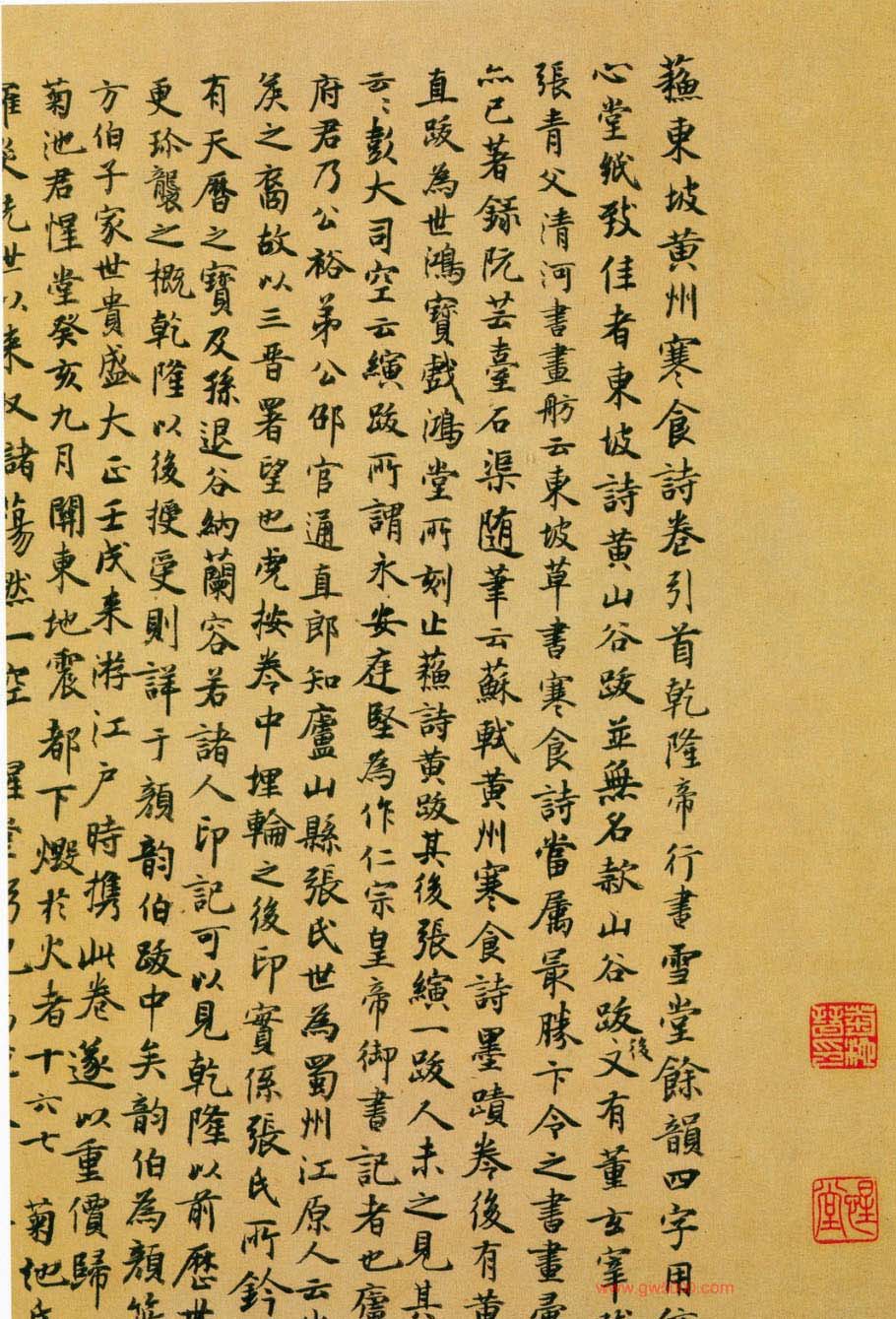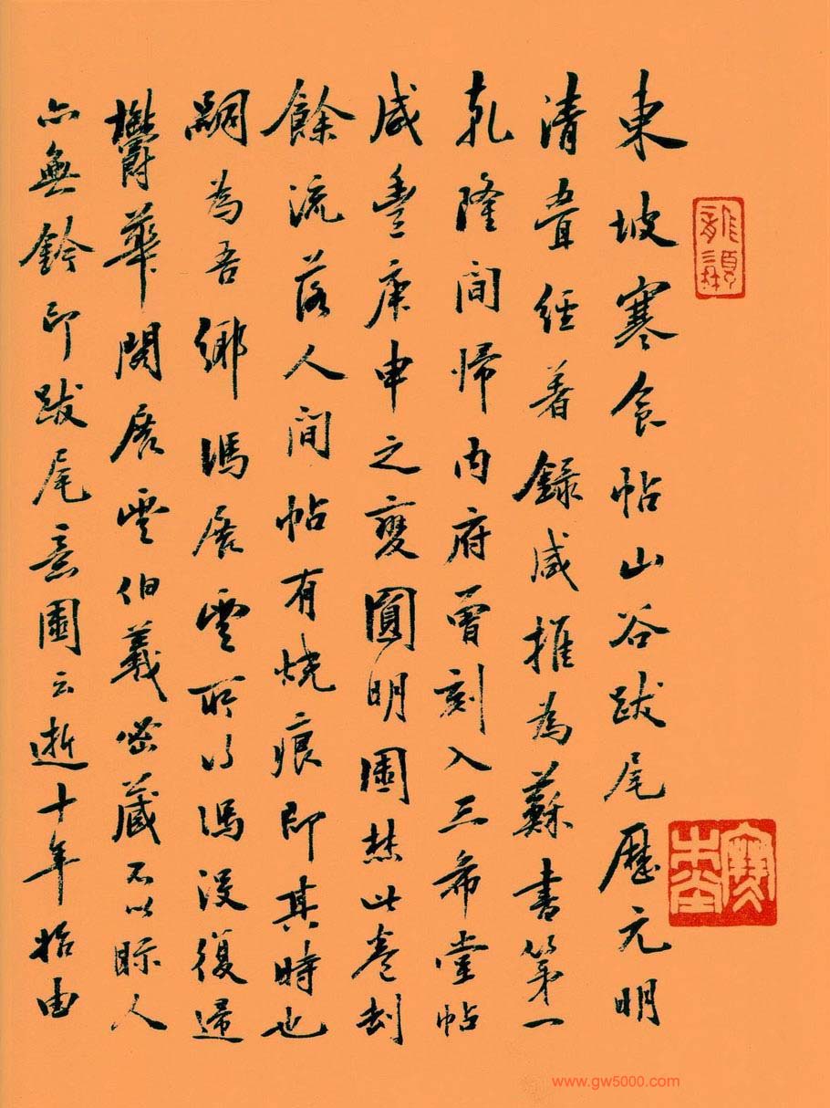 《黄州寒食帖》系三大行书书法帖之一,北宋文学家、书画家苏轼手迹。纸本,25 行,共129字,是苏轼行书的代表作。原属圆明园收藏,现藏于北京故宫博物院。