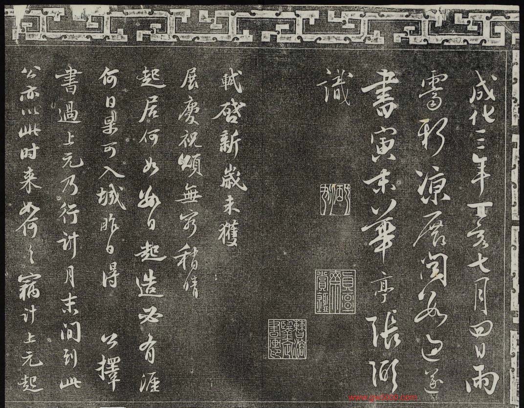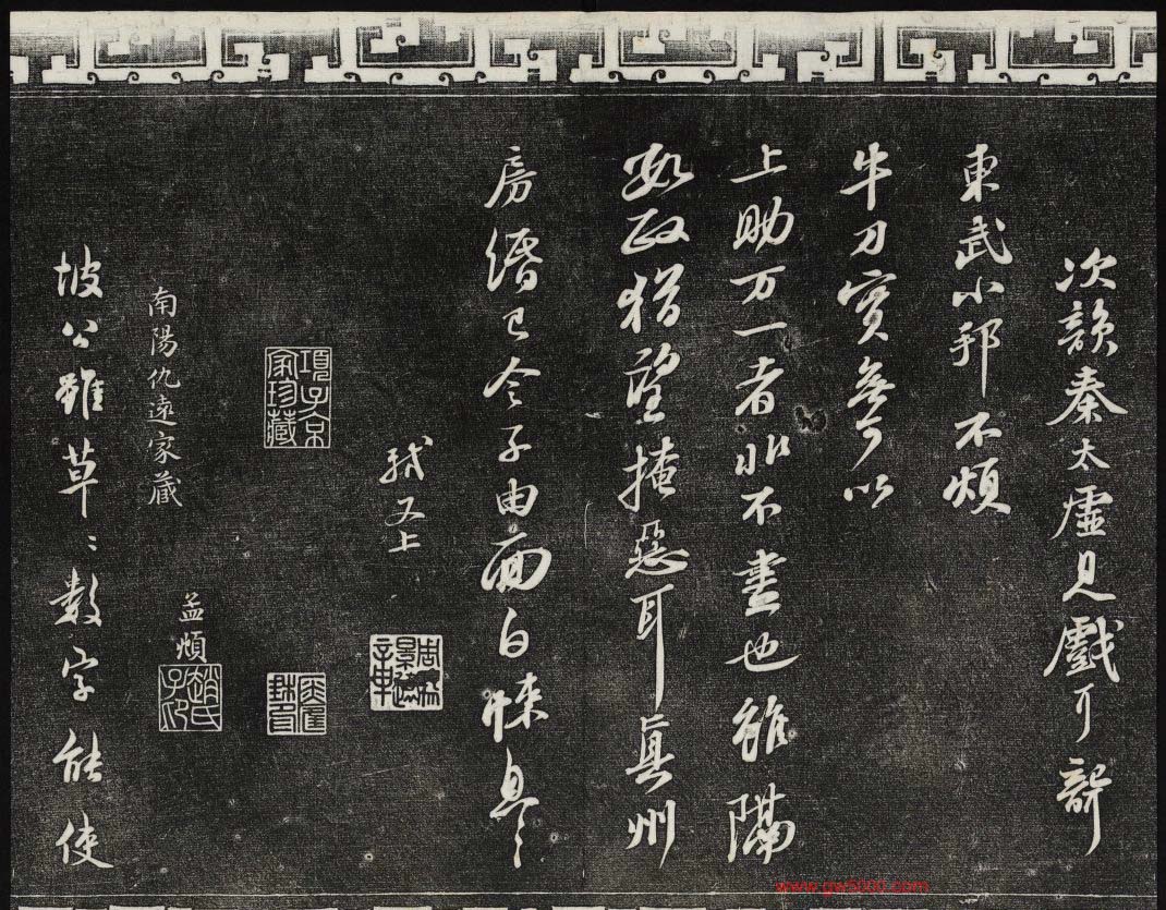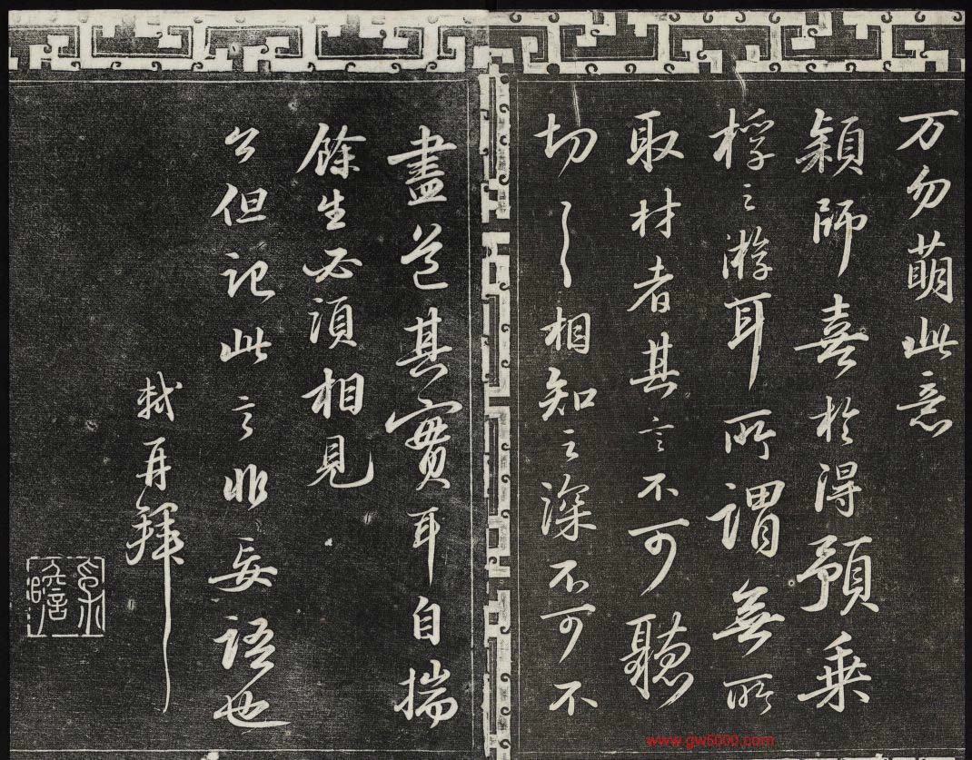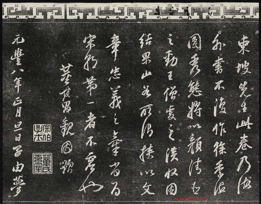 御刻三希堂石渠宝笈法帖第十册苏轼法帖,乾隆15年(1750)刻石,原石现在北京北海公园。本册收录苏轼等书法帖图40张。