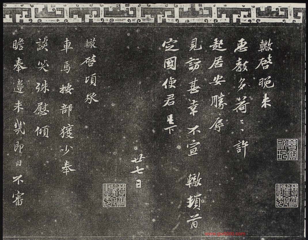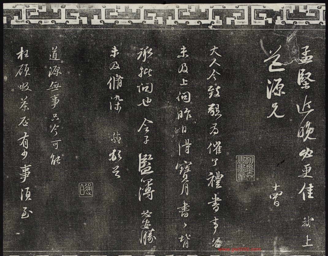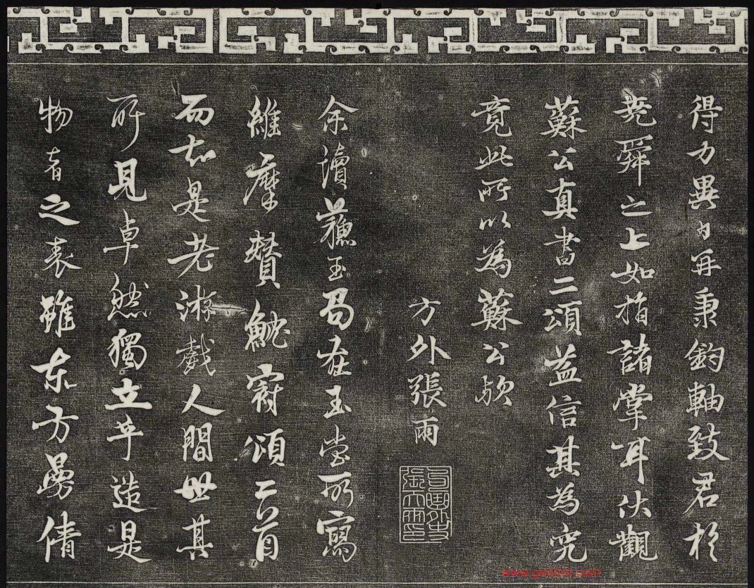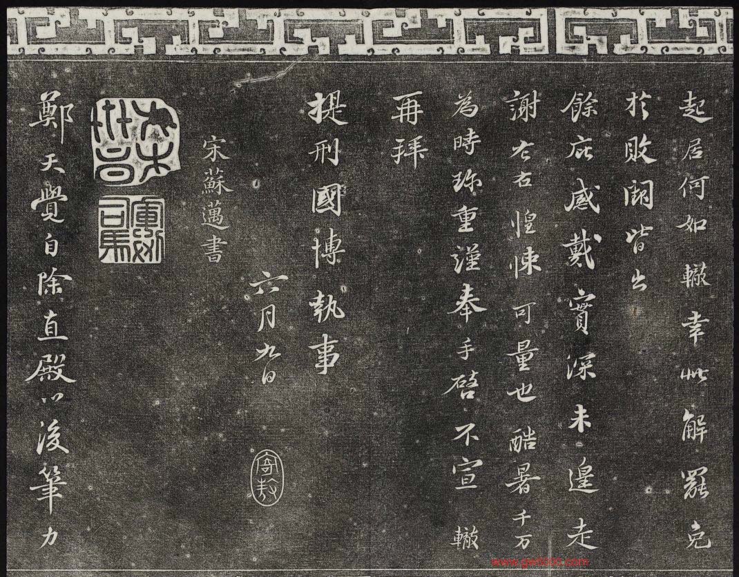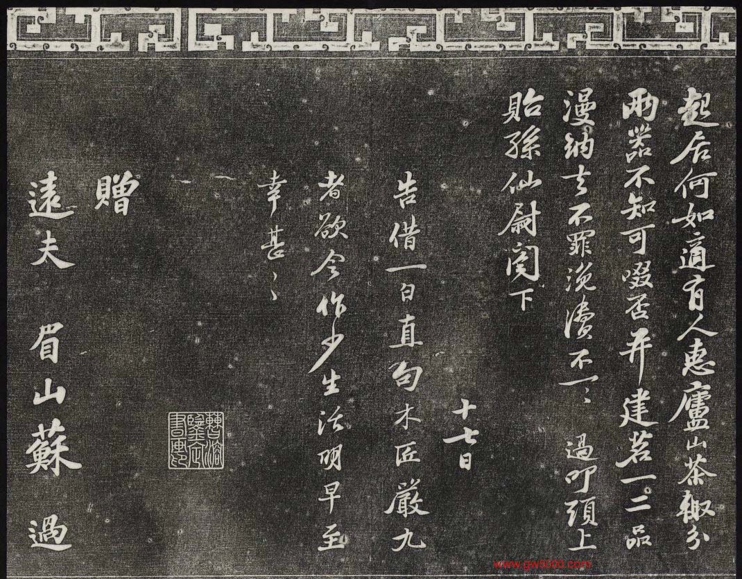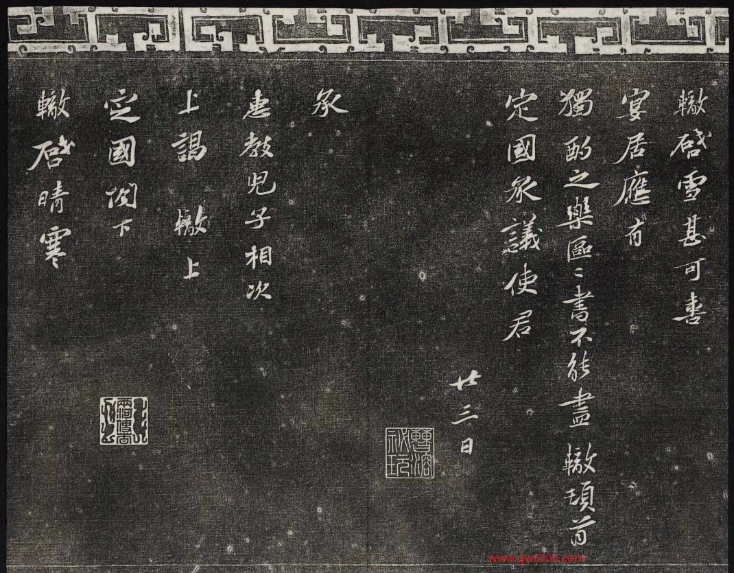 御刻三希堂石渠宝笈法帖第十二册苏轼法帖,乾隆15年(1750)刻石,原石现在北京北海公园。本册收录苏东坡等书法拓片38张。