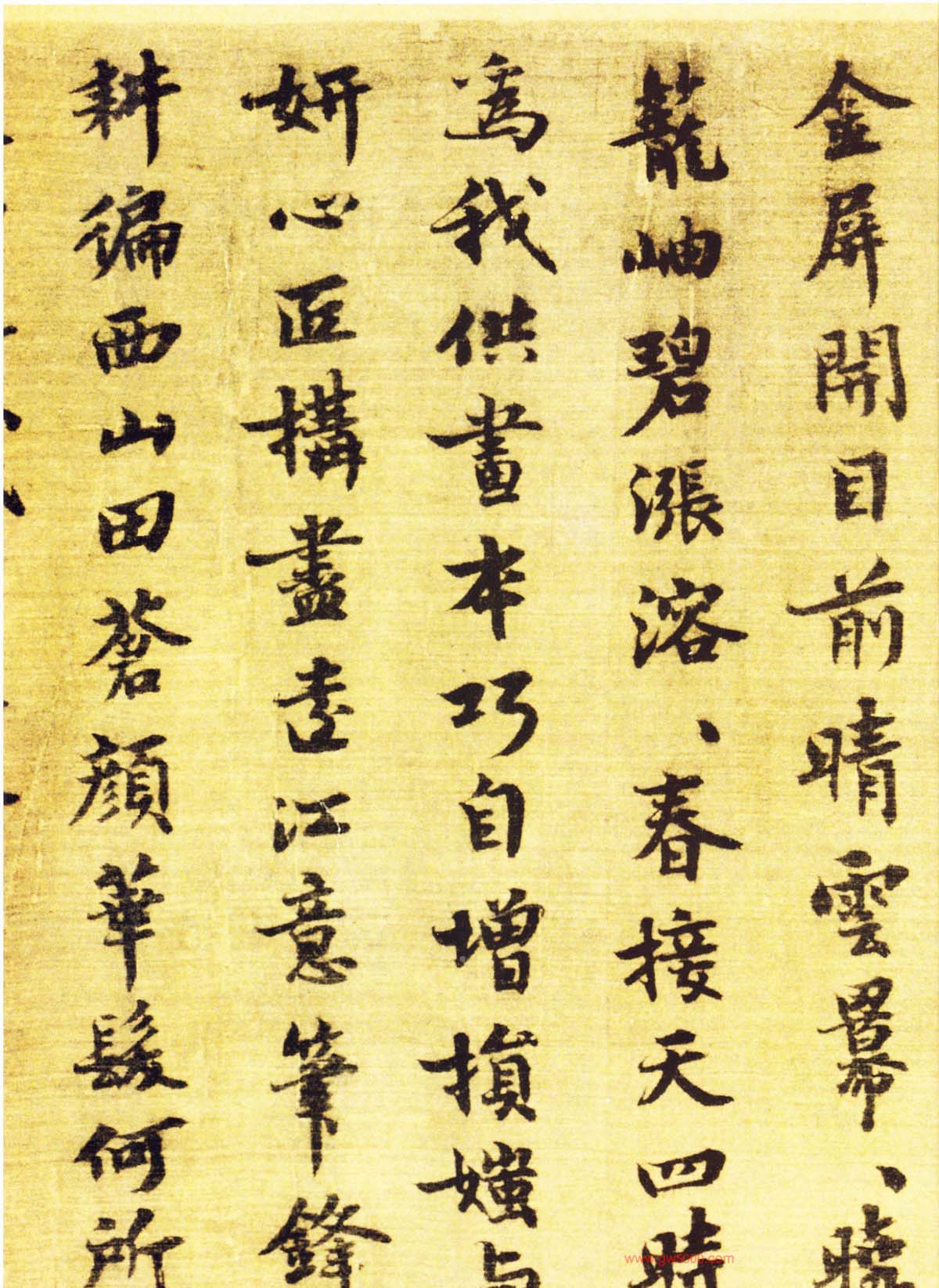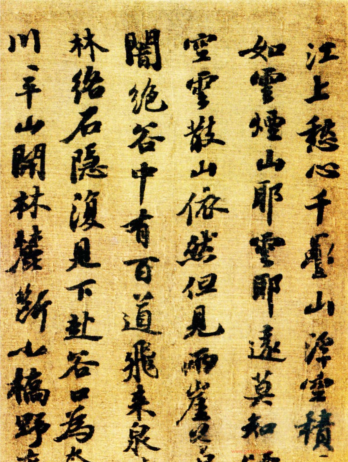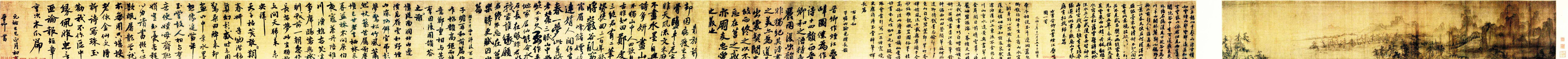 北宋苏轼王诜《烟江叠嶂图诗跋》(合卷),行书,绢本,26×138.5cm。上海博物馆藏。