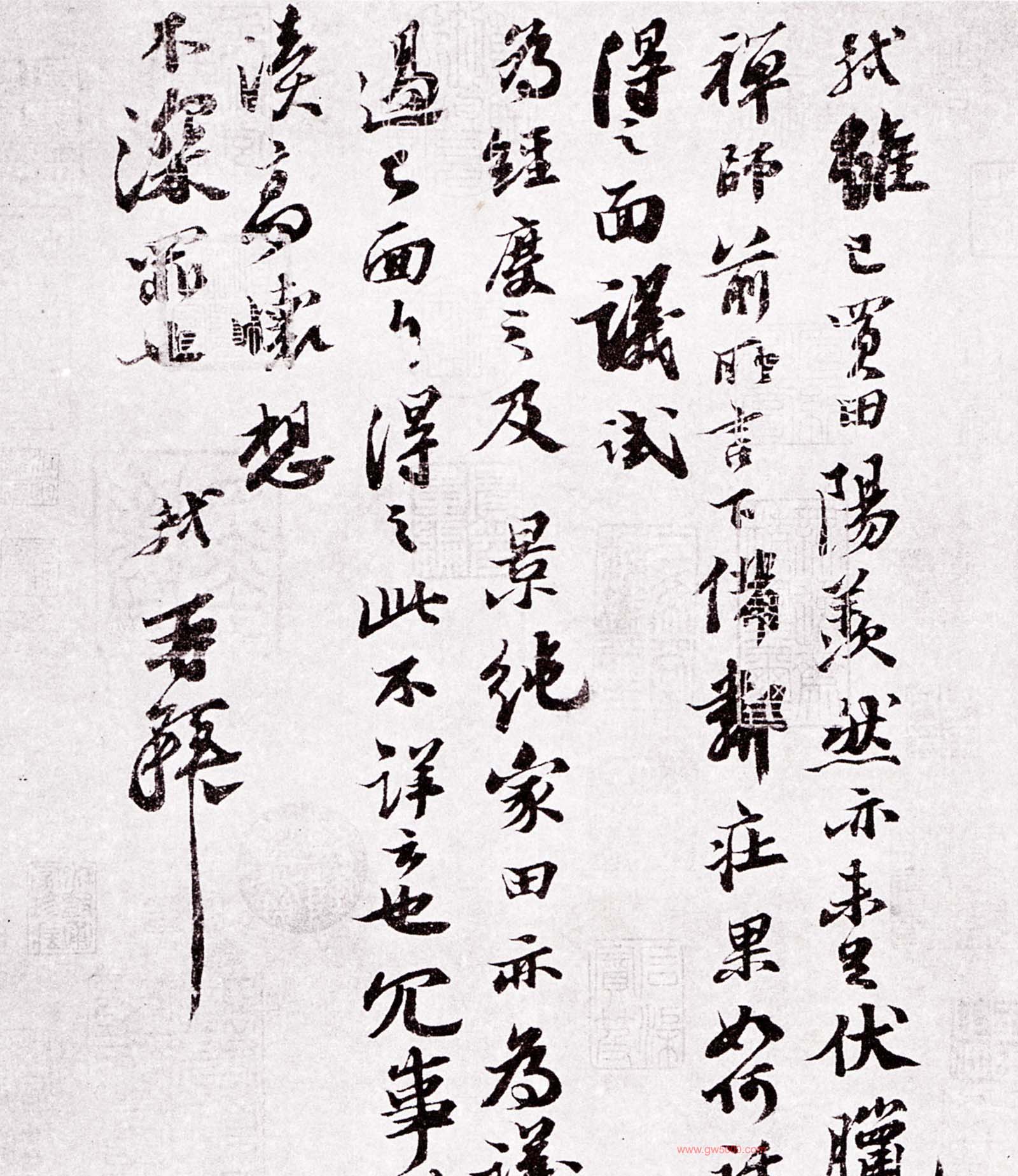 《阳羡帖》释文:轼虽已买田阳羡,然亦未足伏腊,禅师前所言下备邻庄,果如何,托得之面议,试为经度之。景纯家田亦为议过,已面白,得知此不详云也。冗事渍高怀,想不深罪也,轼再拜。