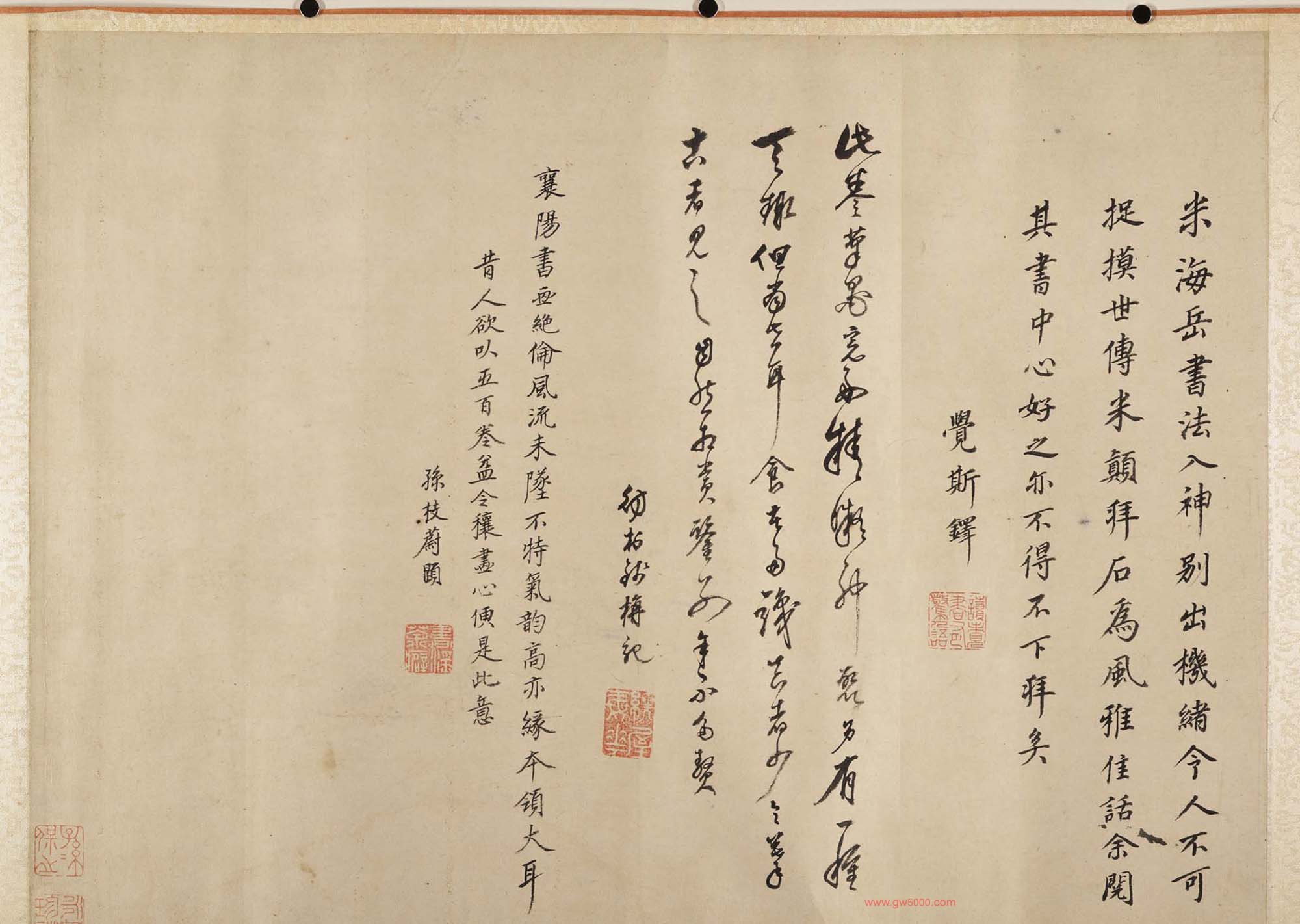 米元章书法长卷右杜少陵题王宰山水图(存疑),纵45.7厘米,纽约大都会博物馆藏。