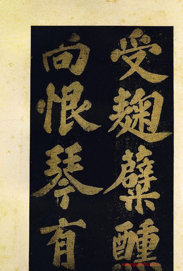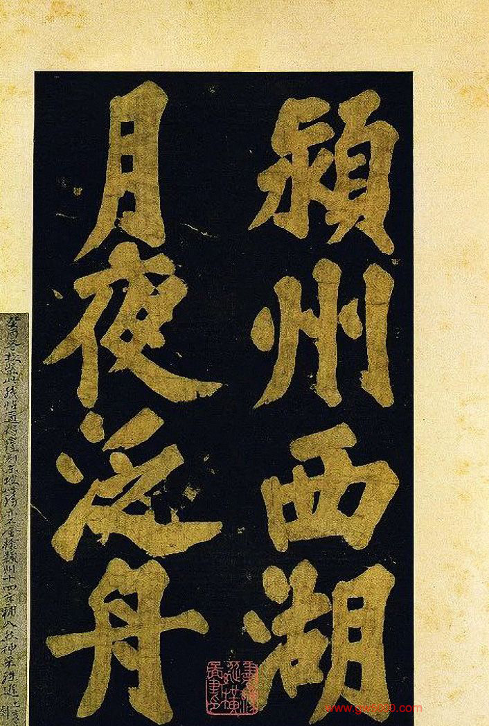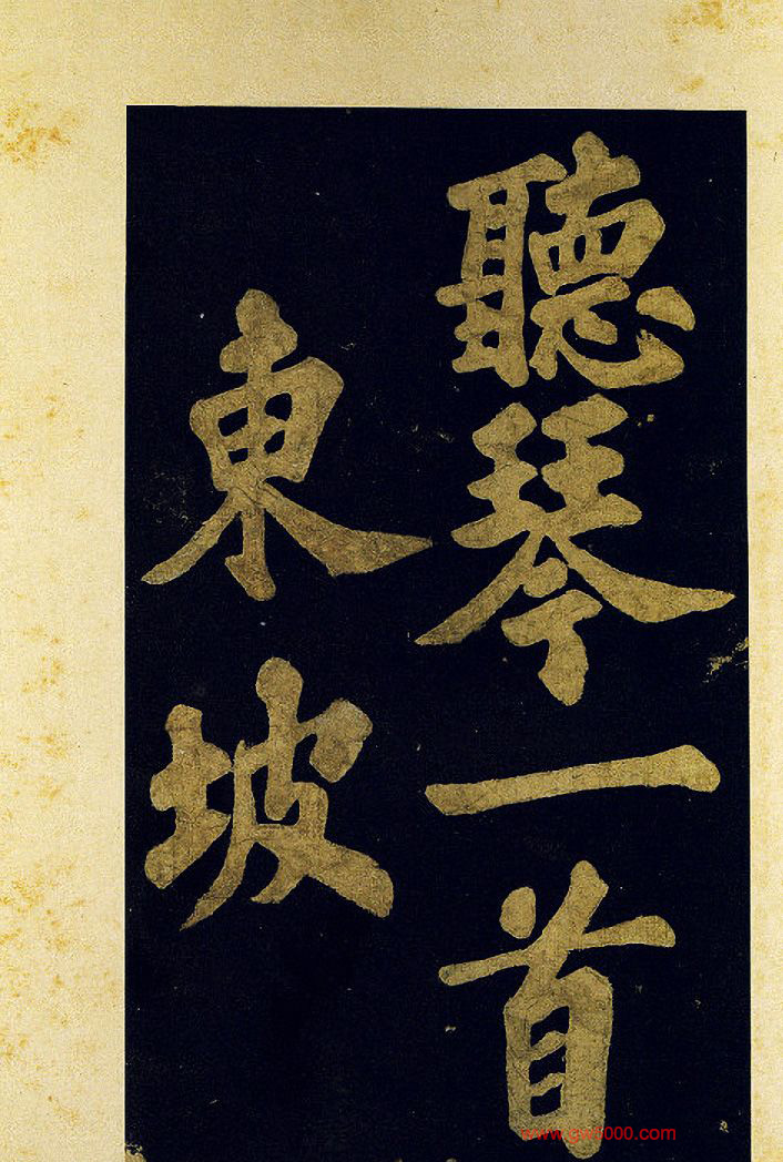 苏轼大字楷书《颖州西湖听琴》,来源于宋拓郁孤台法帖残本,上海图书馆藏。