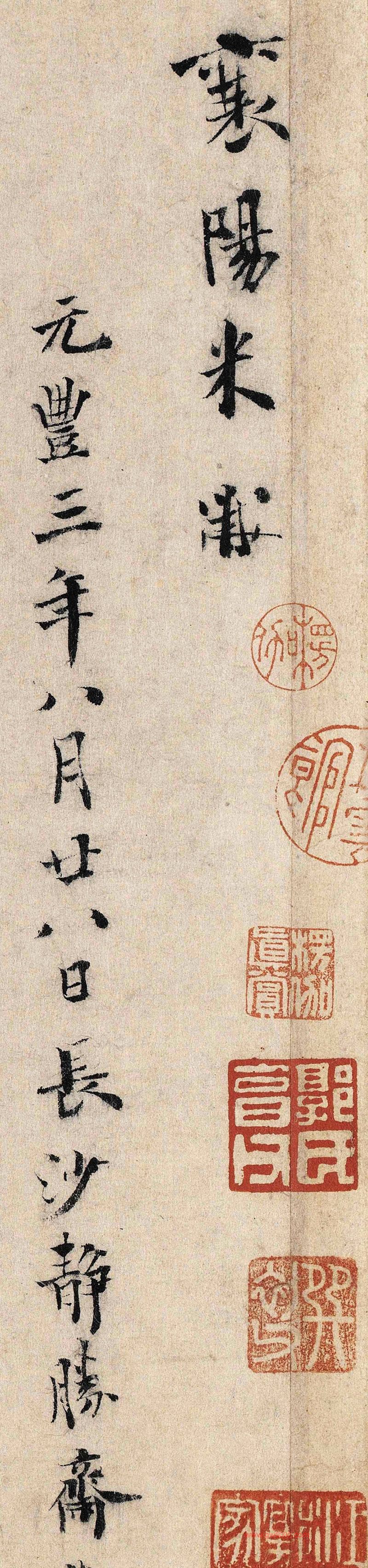 释文:襄阳米黻。元丰三年八月廿八日,长沙静胜斋观。