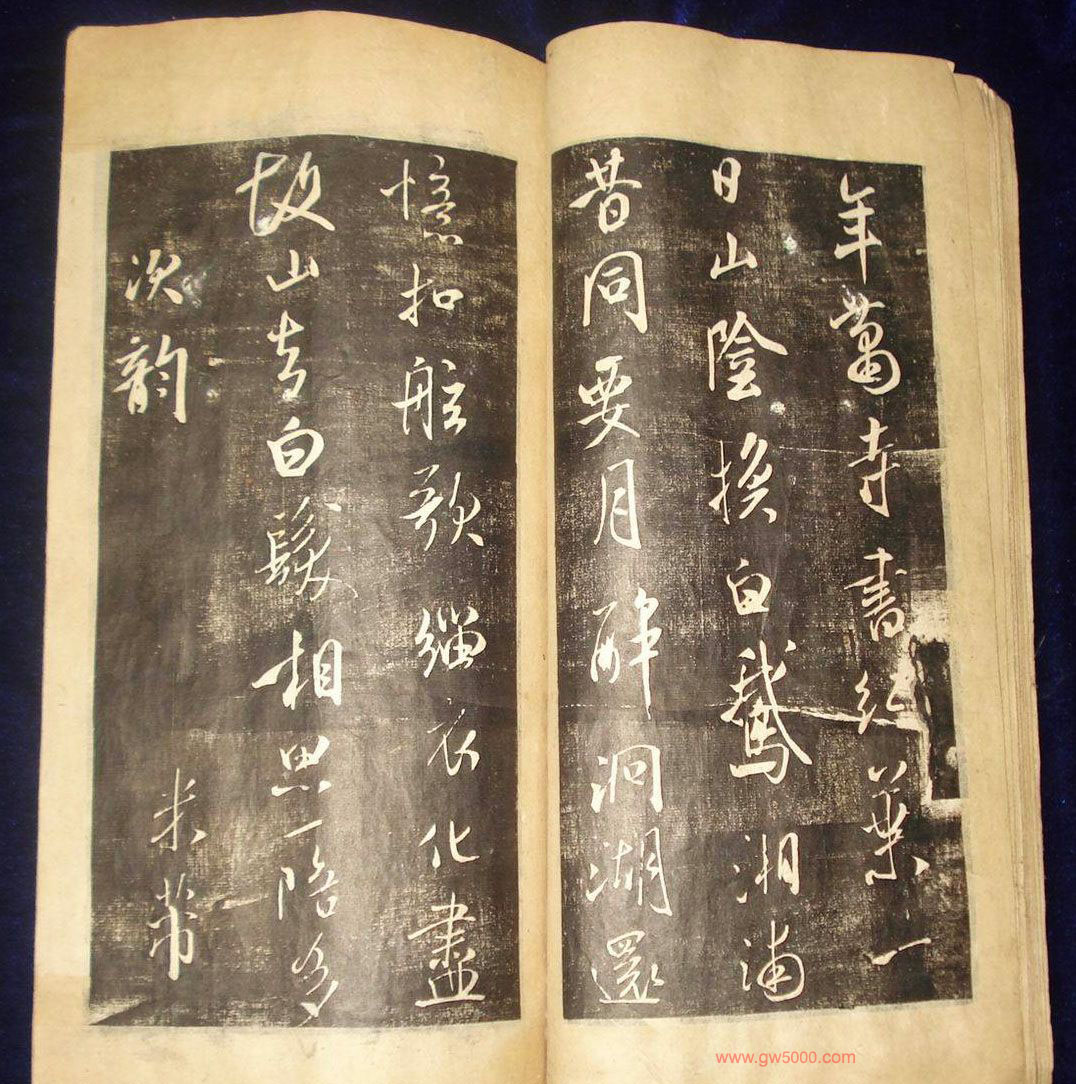 卷之七--宋米元章书,清初刘光选辑米芾真迹精工摹刻,刻成于康熙十六年(1677)。本卷米元章书法图片22张。