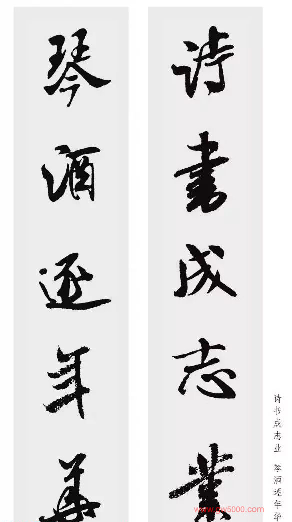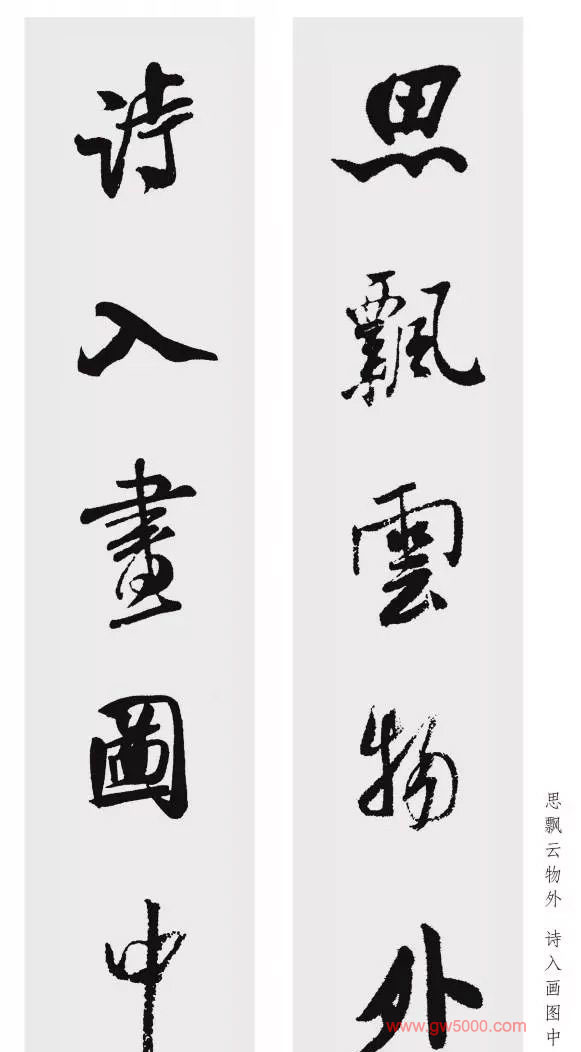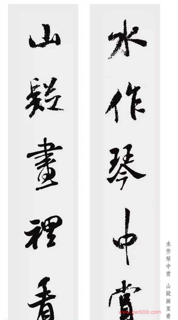 米芾行书集字五言对联欣赏,来源:人民美术出版社《中国古代碑帖集联--米芾行书帖》,选刊米芾书法集联47副。