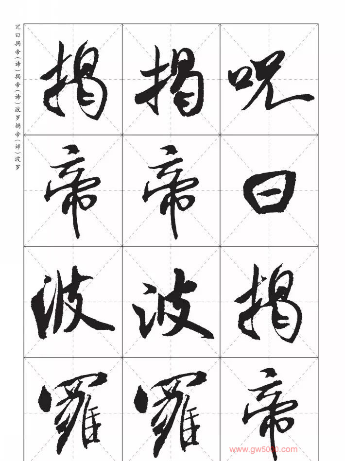 米芾行书集字《心经》田字格版