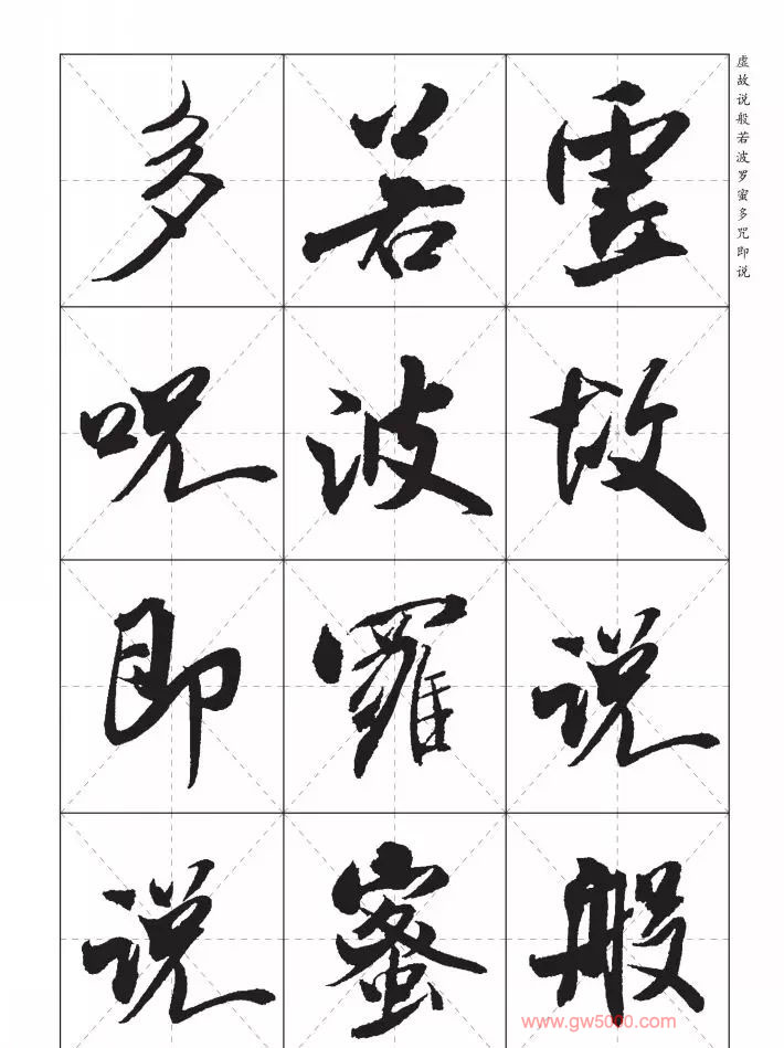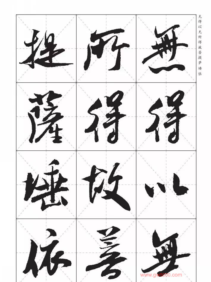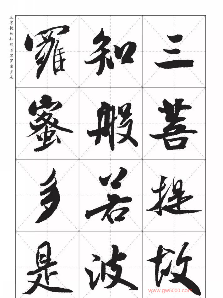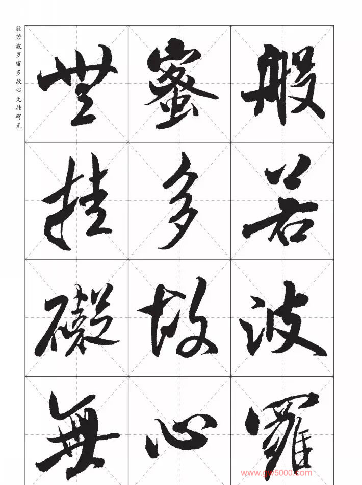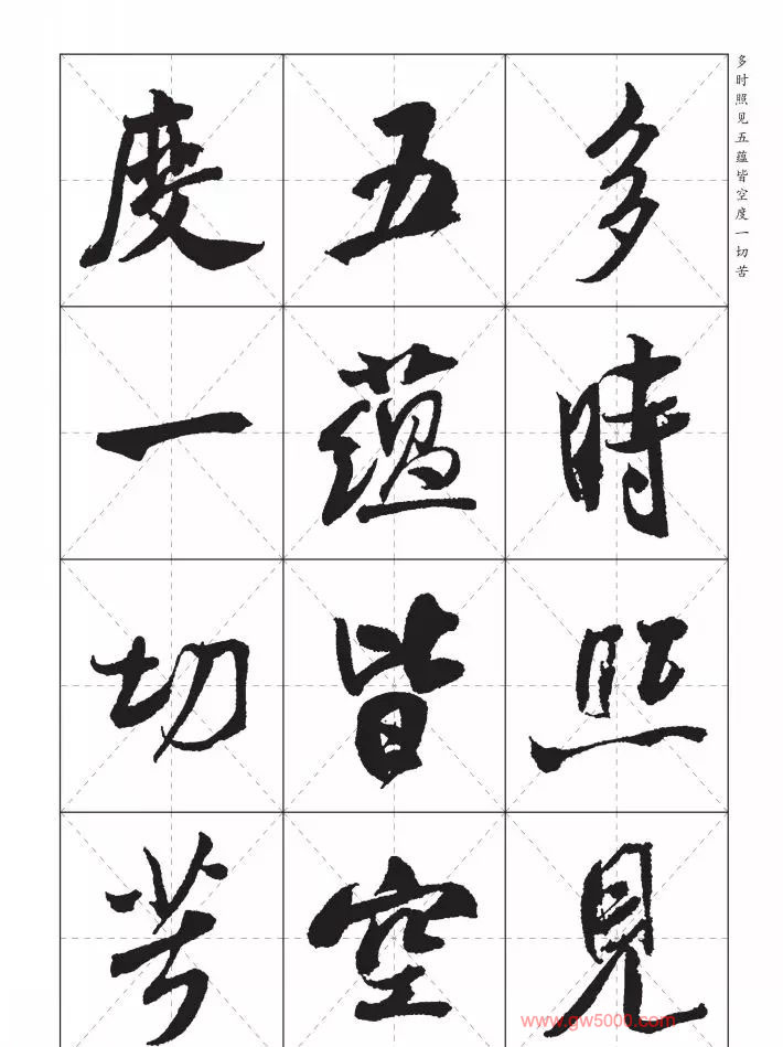 米芾行书集字《心经》田字格版,来源:河南美术出版社《中国历代书法名家写心经放大本系列--米芾行书心经》