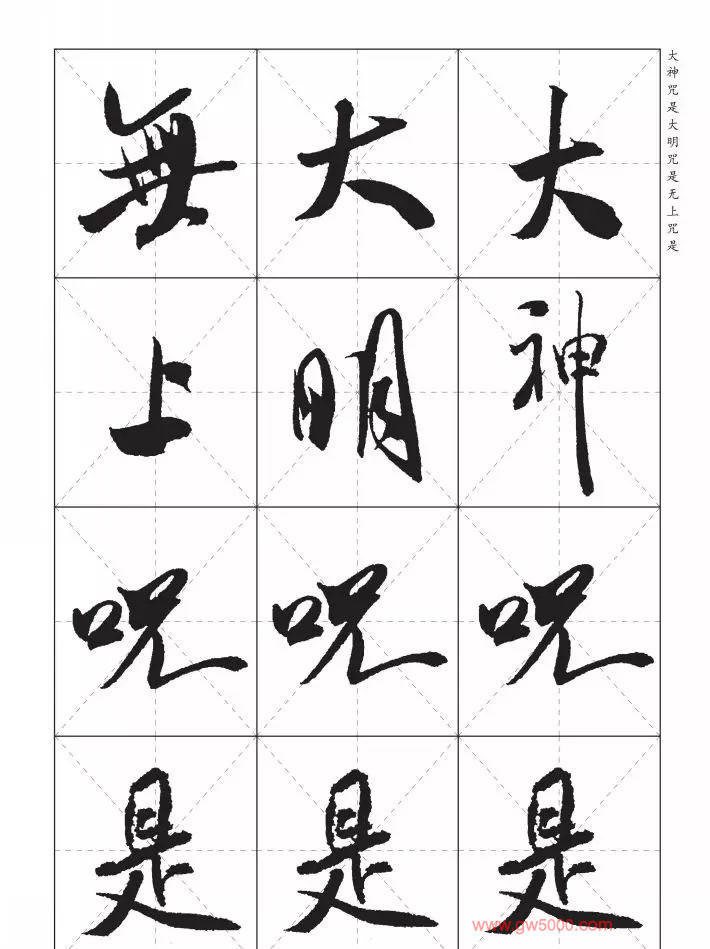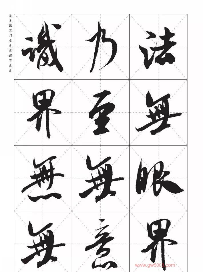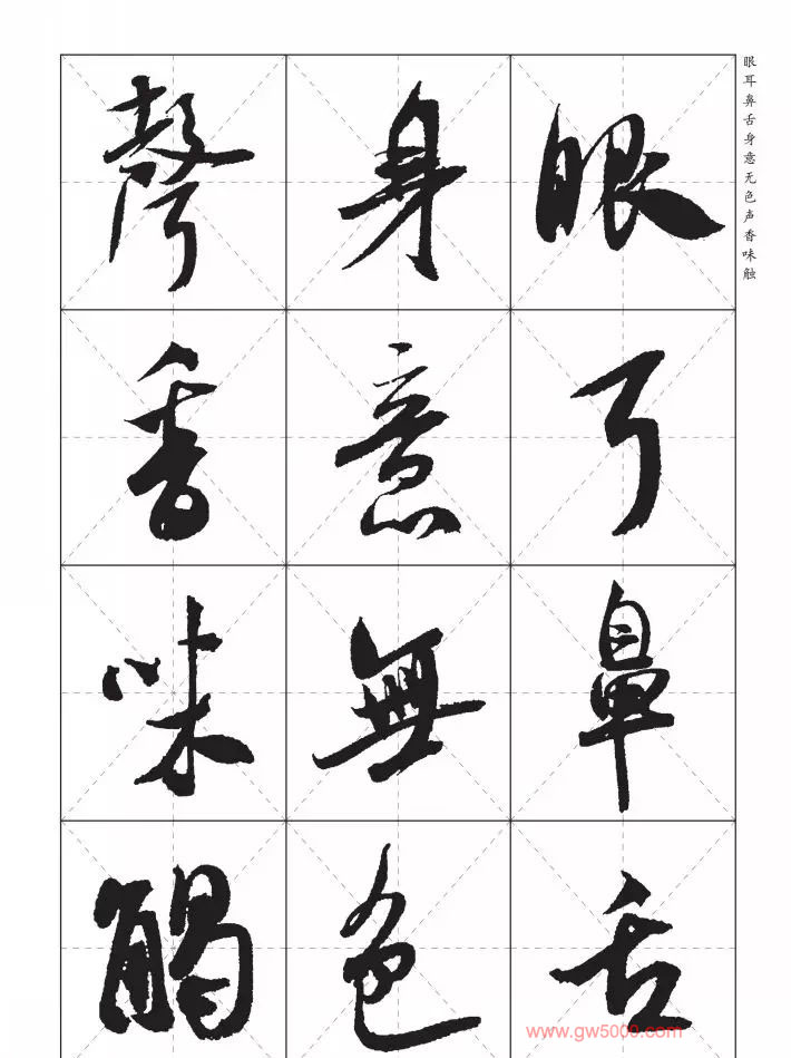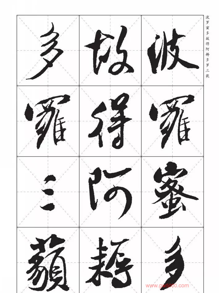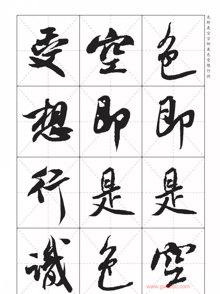 米芾行书集字《心经》田字格版,来源:河南美术出版社《中国历代书法名家写心经放大本系列--米芾行书心经》