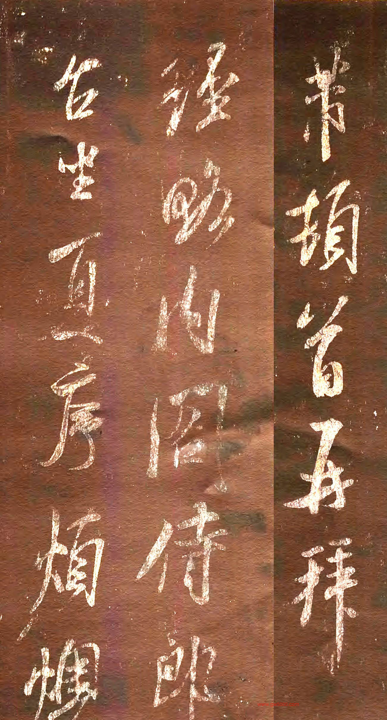 释文: 芾顿首再拜。经略内阁侍郎台坐。夏序烦燠,恭惟神明相佑,台候动止万福。不审几日入部?南华韶石必闻疑韵,杜甫叫者公亲见之,殊为奇胜。颖叔长编,叙峤外胜概,真可乐也。何当参侍?珍重珍重!芾。