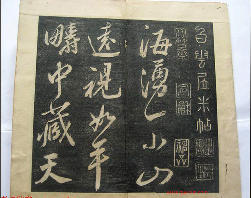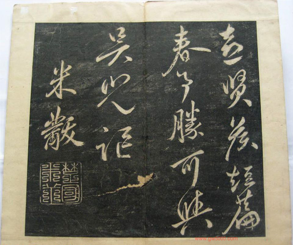 米芾(105l—1107)北宋书画家,初名“黻”,字元章,号襄阳漫士,海岳外史等,世居太原,迁襄阳,后定居润洲(今江苏镇江),徽宗召为画学博士,曾官礼部员夕卜朗,人称“米南宫”因举止“颠狂”,称他“米颠”,能诗文,擅书画,精鉴别,行草得力于王献之,用笔俊迈有风情阵马,沉着痛快之评,与蔡襄、苏轼、黄庭坚合称“宋四家”。