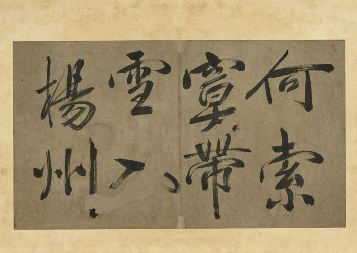 过扬州。东风何索寞。带雪入扬州。尚想遗钗雀。重观上玉钩。真同一梦觉。空
